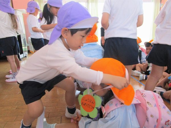 🏅『入園おめでとう!』~入園した年少さんに「おめでとう💕」の気持を込めて、プレゼントを首にかけてあげたよ。
