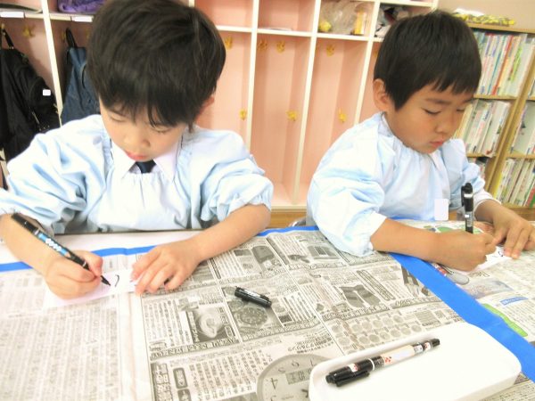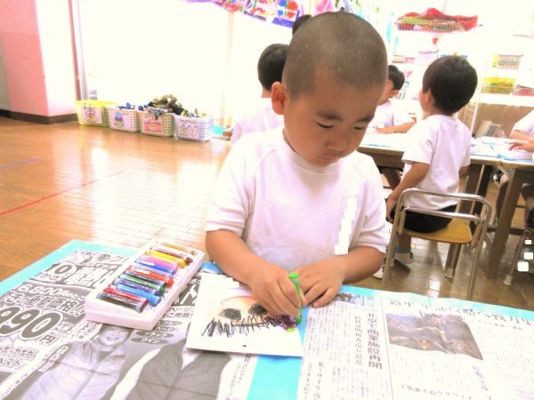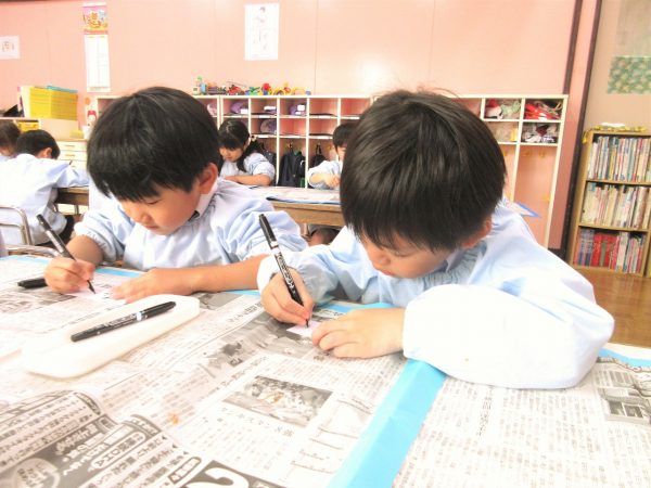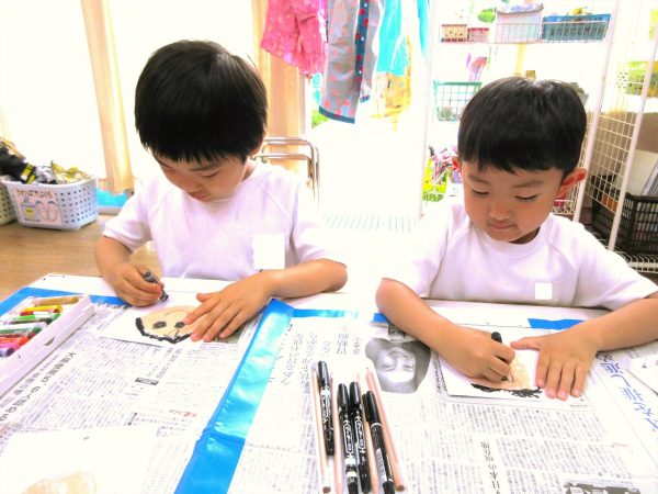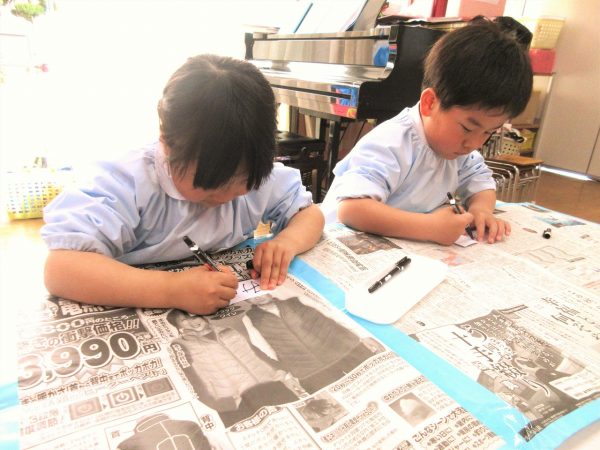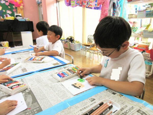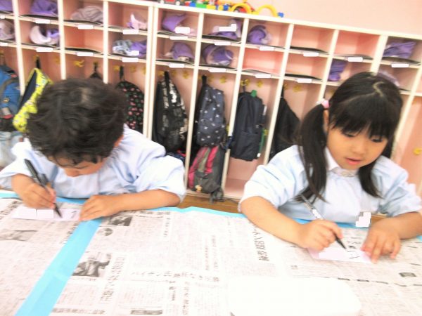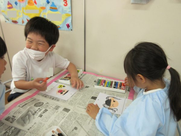 ✒『お当番カード作り』~ペンで名前を書き、クレヨンで自分の顔を描いて、お当番カードを作ったよ。