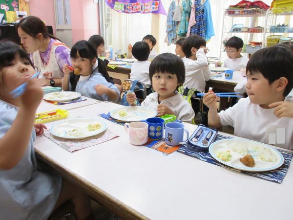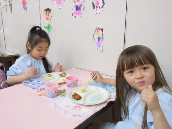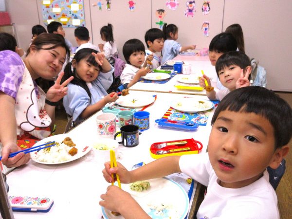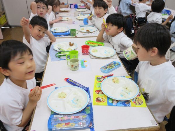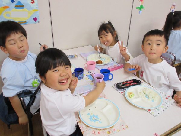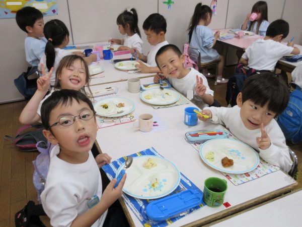 🥢『給食始め』~今日から幼稚園の給食が始まったよ。みんなで楽しく食べて、美味しかったね!
