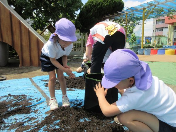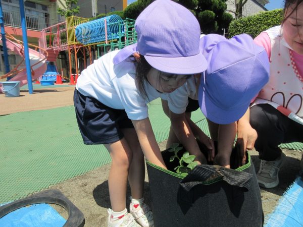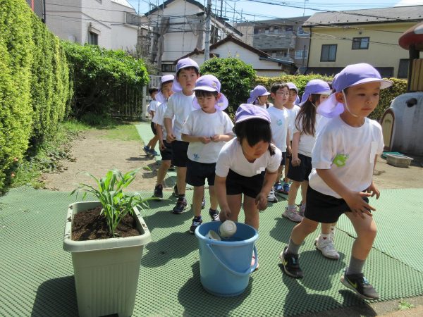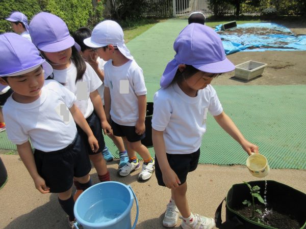 🌱『植えて⋯、水やりを⋯』~苗を優しく植えてから、お水をたっぷりあげたんだ。「大きく 大きく 育ちますますように!」