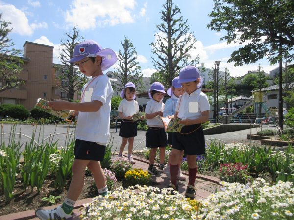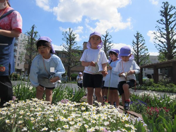 🌼『園外に!』~大谷公園へ図鑑を持って、春を見つけに出かけたよ。色とりどりの花が咲いていて、きれいだったね!