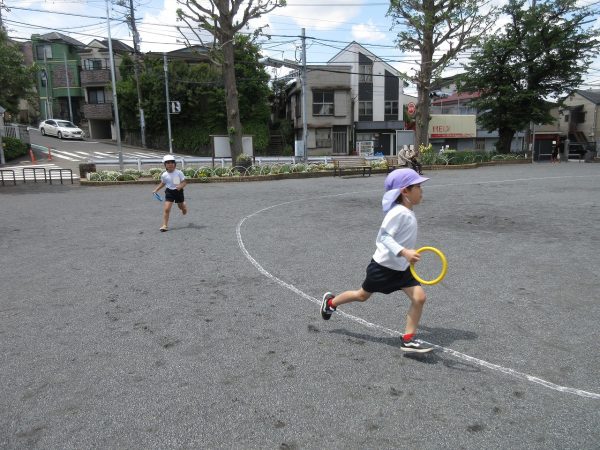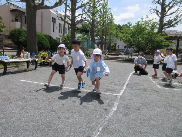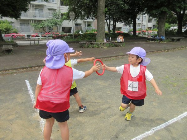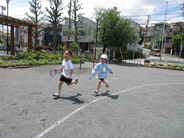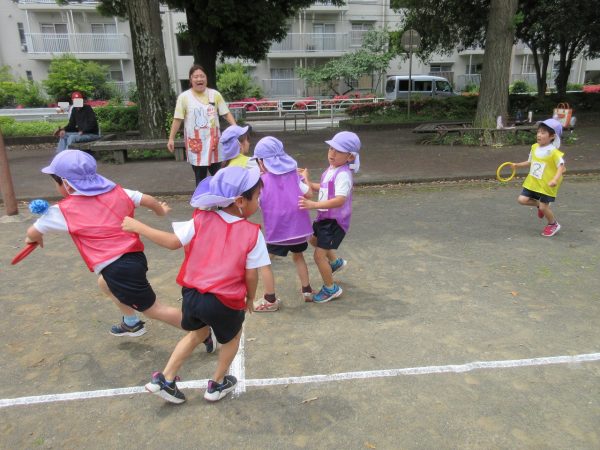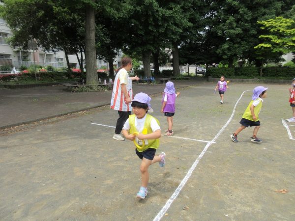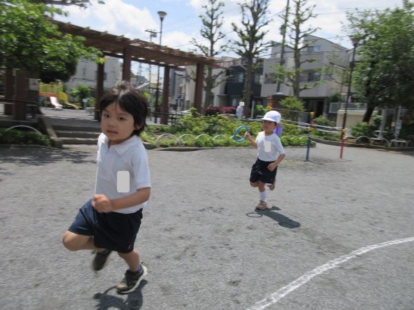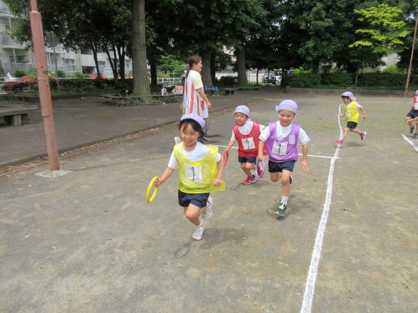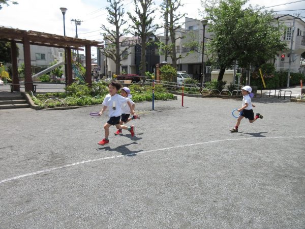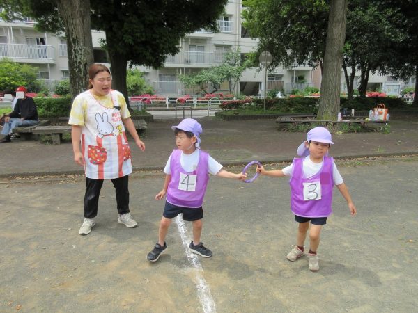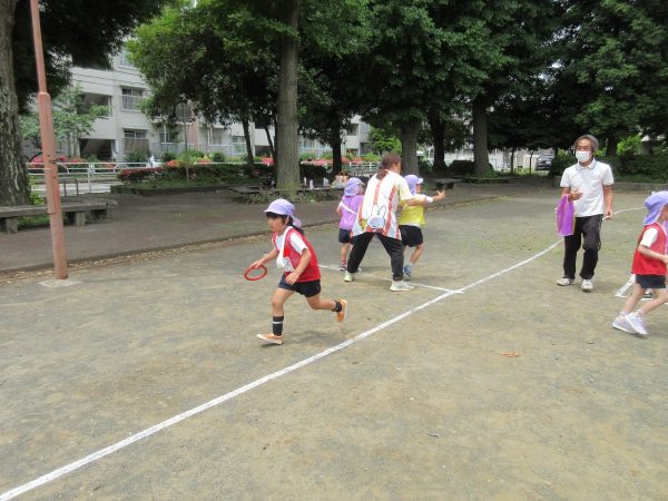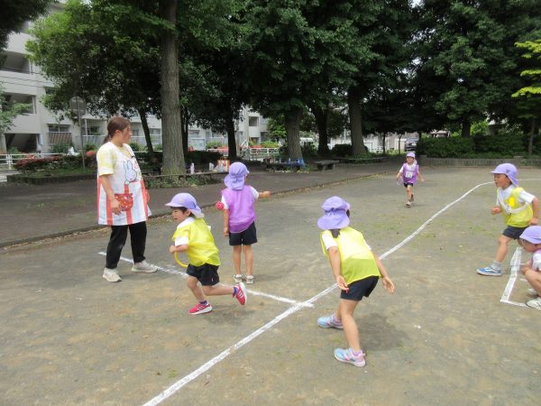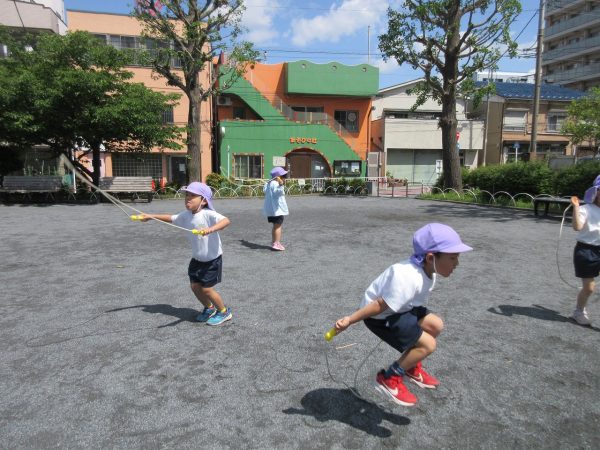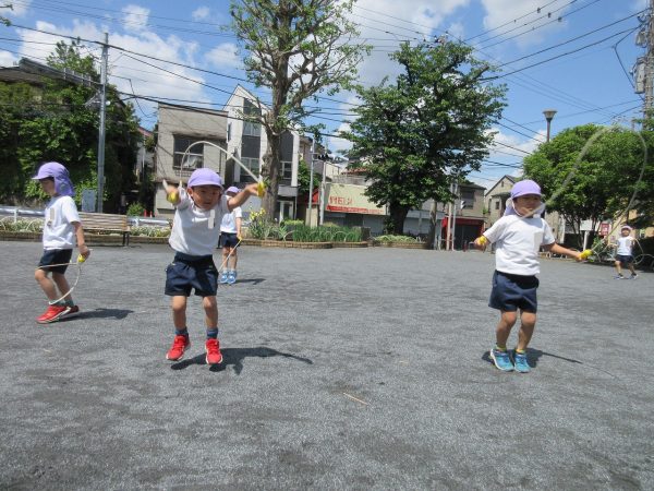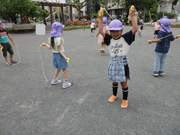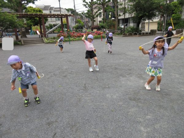😲『園外へ⋯』②~大谷公園・浜松町公園・団地公園と、ゼッケンをつけて、縄跳びを持って、たくさん出かけたよ。縄跳びは段々に跳べる回数が増えてきたね! バトン渡しも上手くなり、チームで走れるようになっってきたね‼