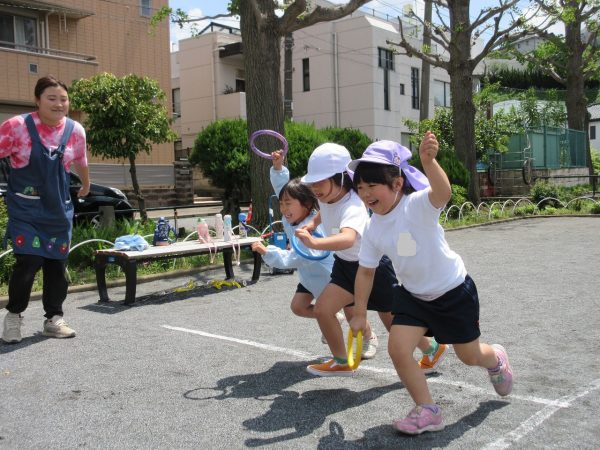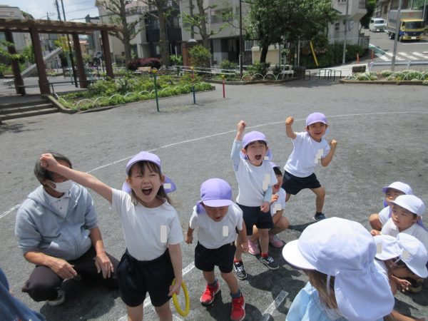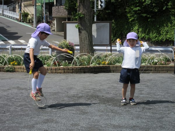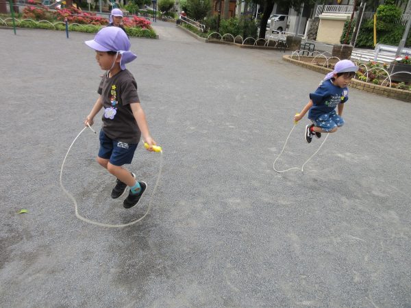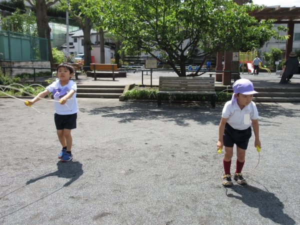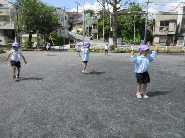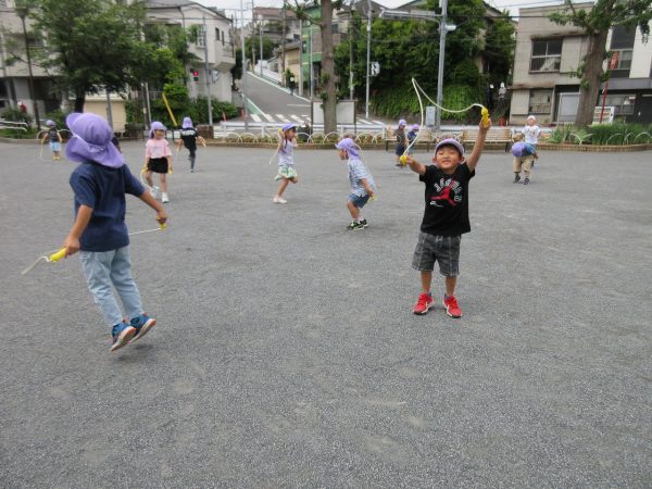 😉『縄跳び 持って⋯』~大谷公園の広場で縄跳びをしたり、3チームに分れてリレーもしたよ。少しずつ跳べるようになってきたね! チームが勝てるように、頑張るぞー‼