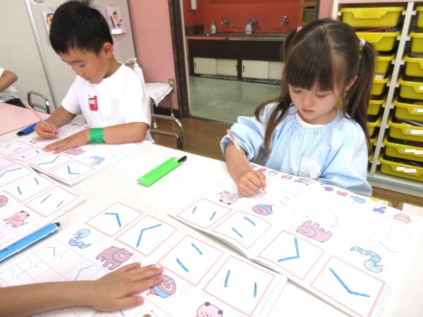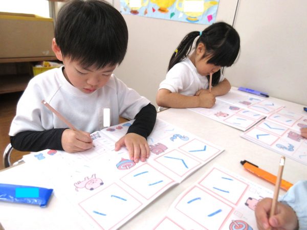 ✐『ひらがなワーク』~鉛筆を正しく持って、姿勢よく 姿勢よく⋯。しっかり丁寧に書けたね!