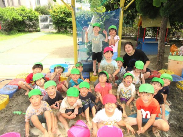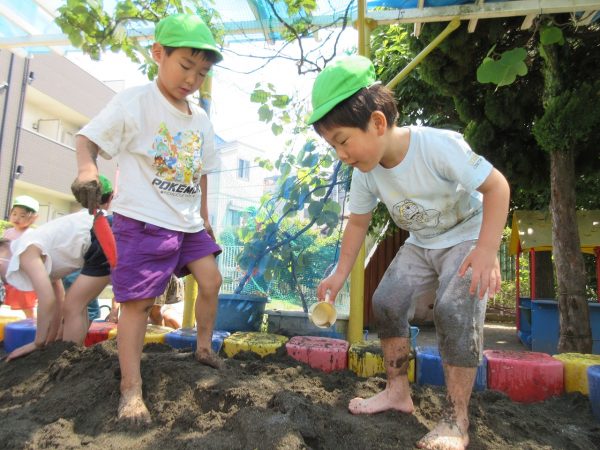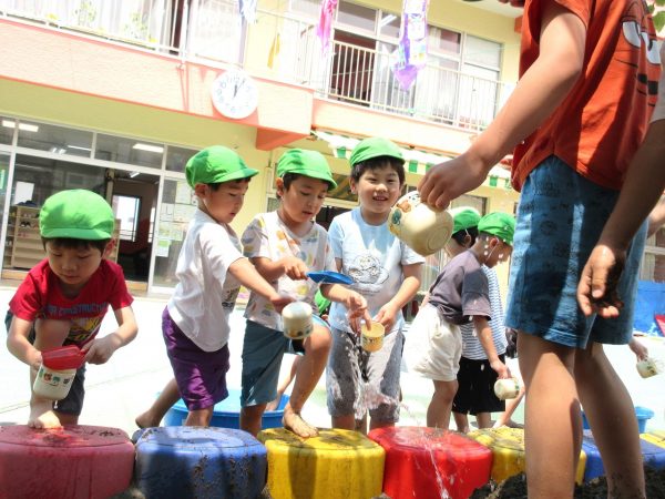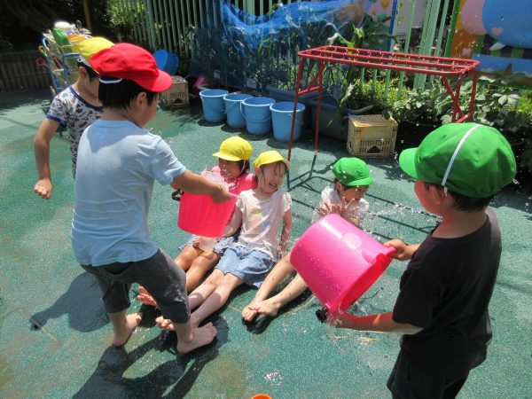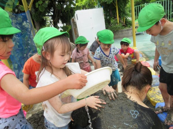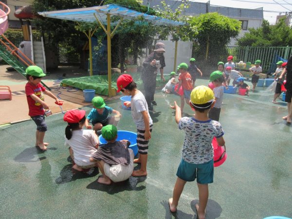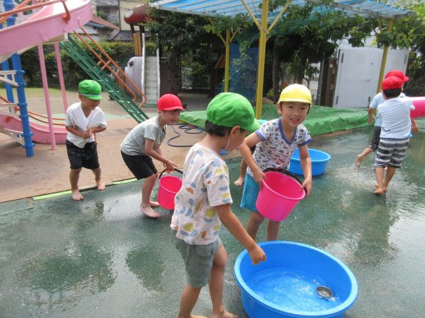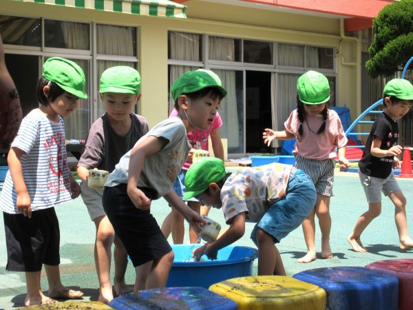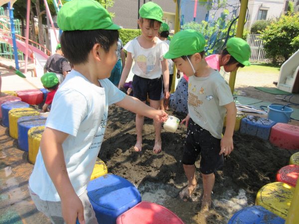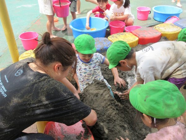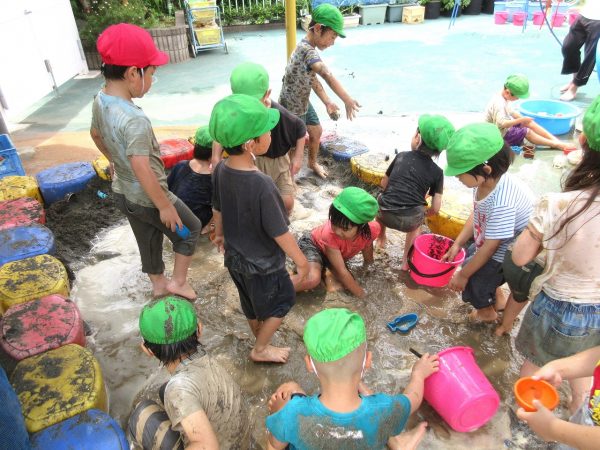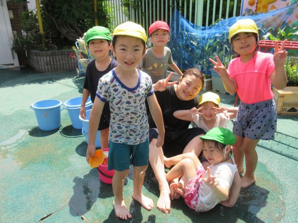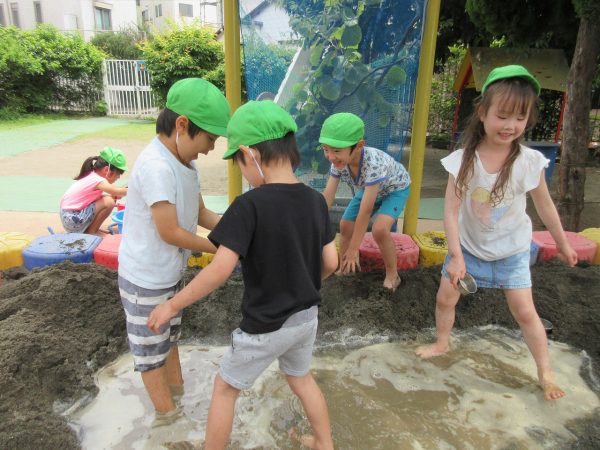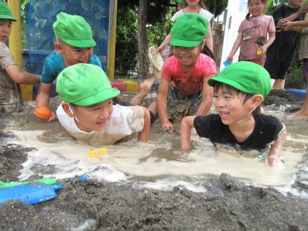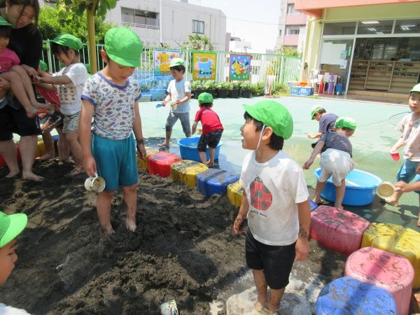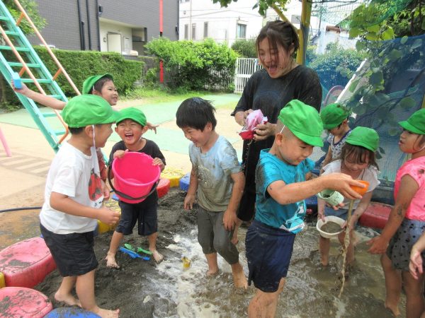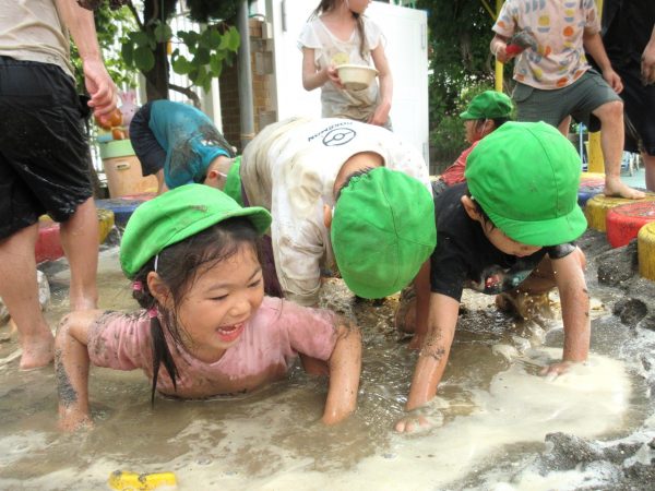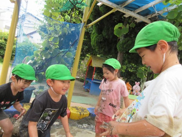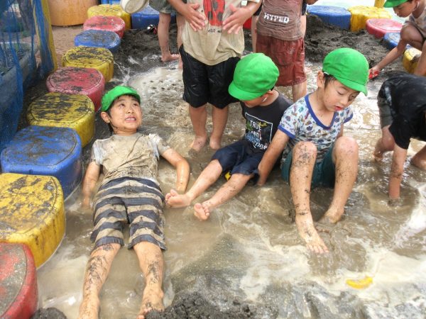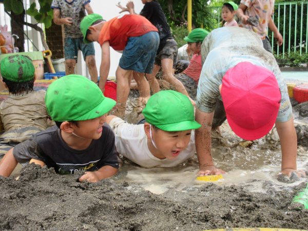 😆『水遊び・泥んこ遊び』②~暑い日に水遊びをすると、気持ちがいいね。年長さんって、ダイナミックに遊ぶでしょ!