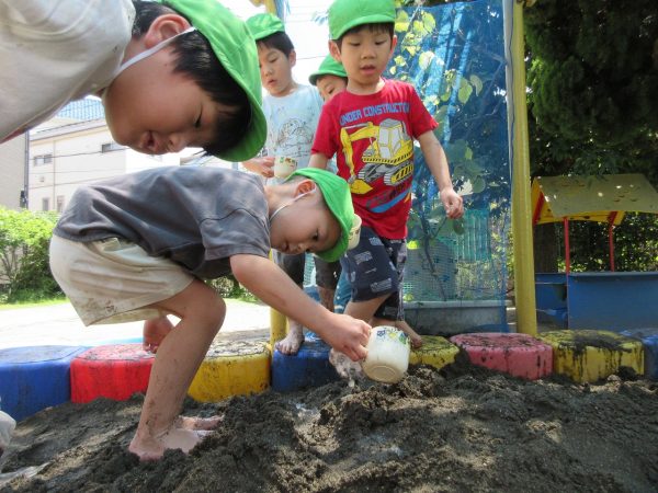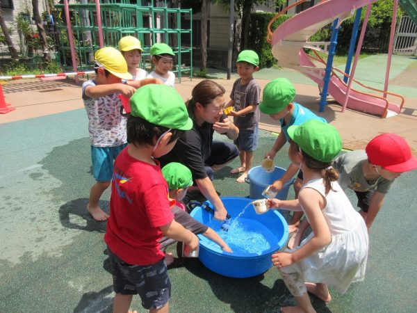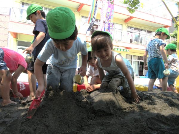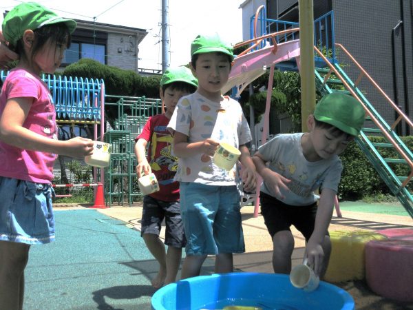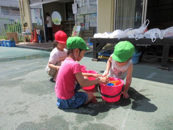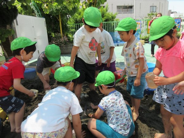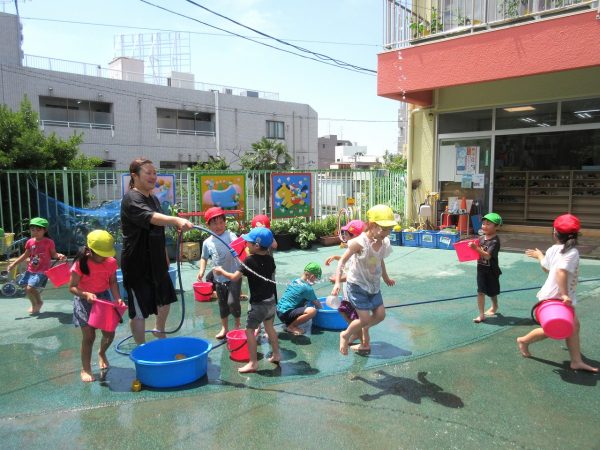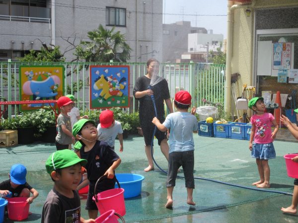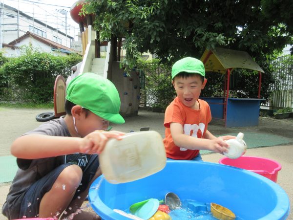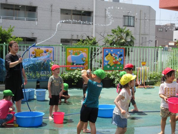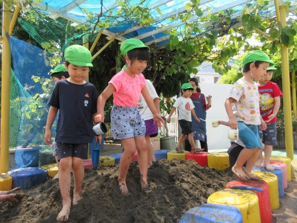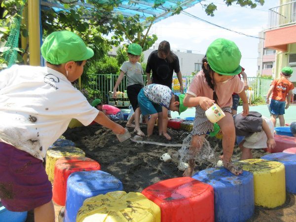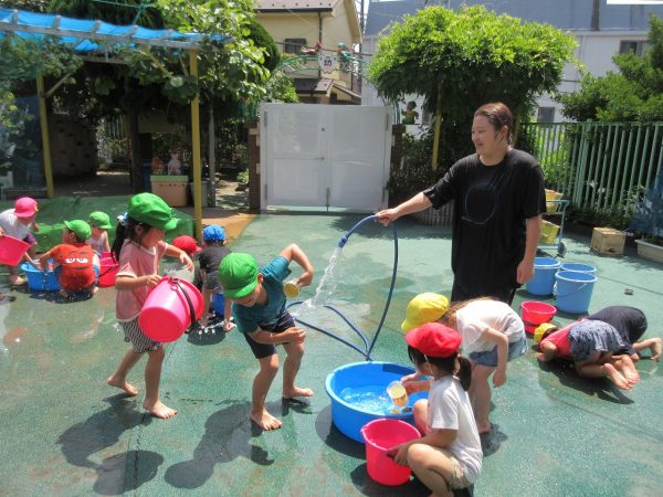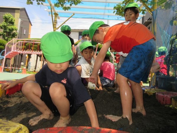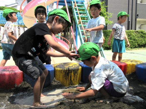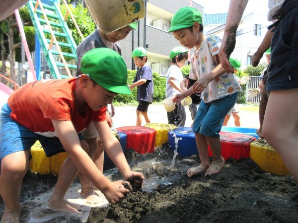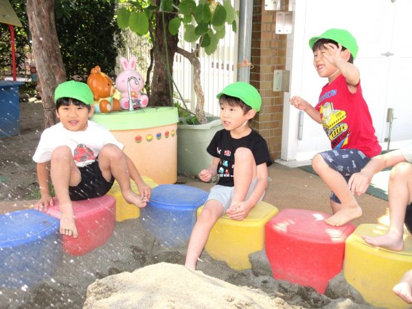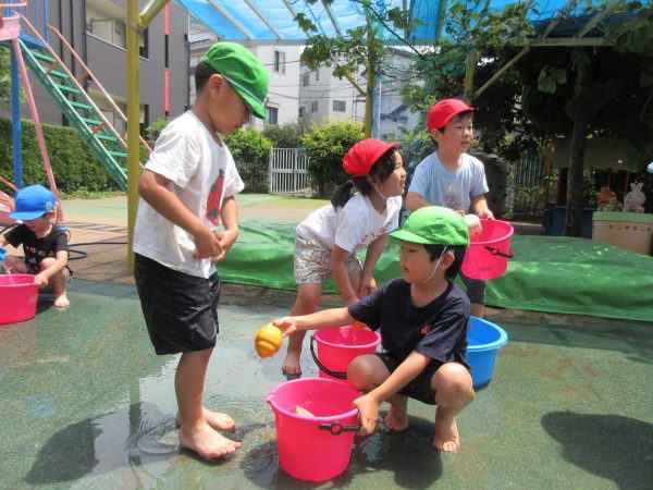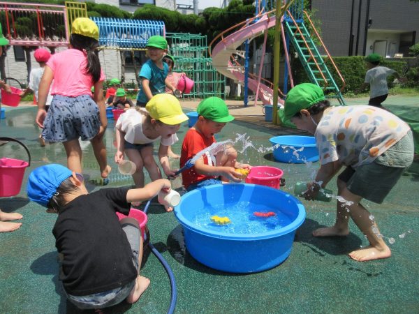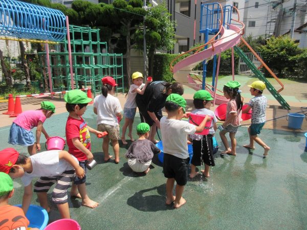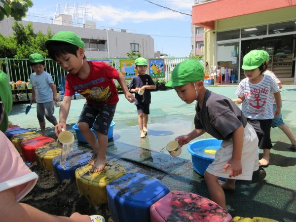 😆『水遊び・泥んこ遊び』②~暑い日に水遊びをすると、気持ちがいいね。年長さんって、ダイナミックに遊ぶでしょ!