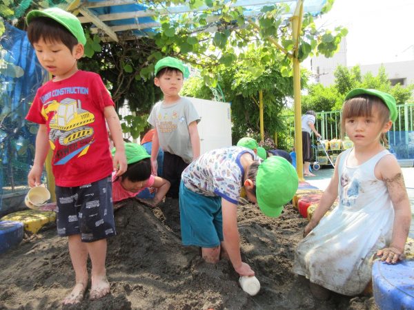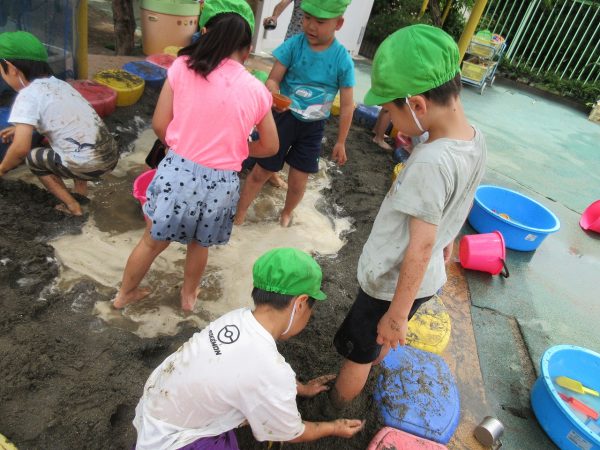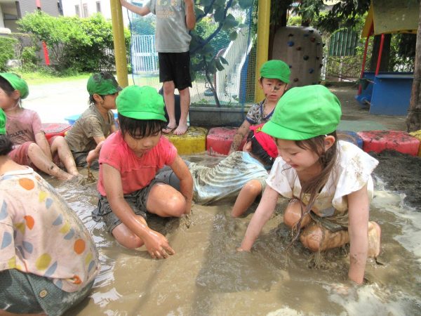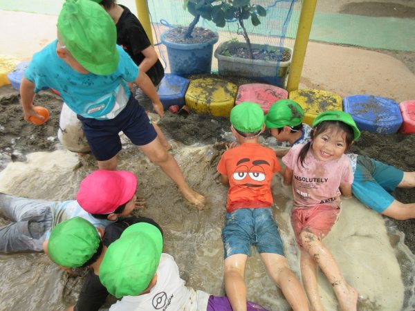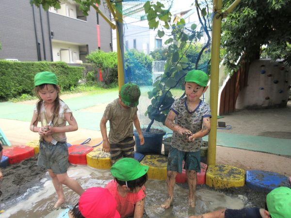 🚿『水遊び・泥んこ遊び』~とても暑くなってきたので、水遊び・泥んこ遊びをしたよ。水が冷たくて、思いっきり遊んだんだ!