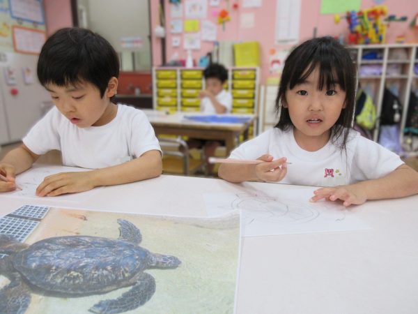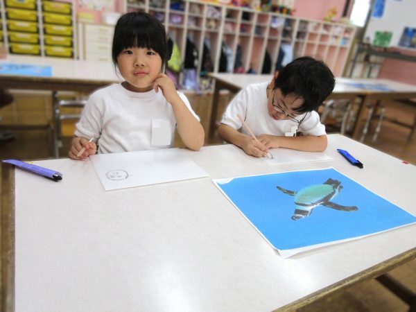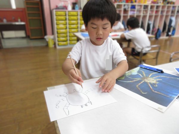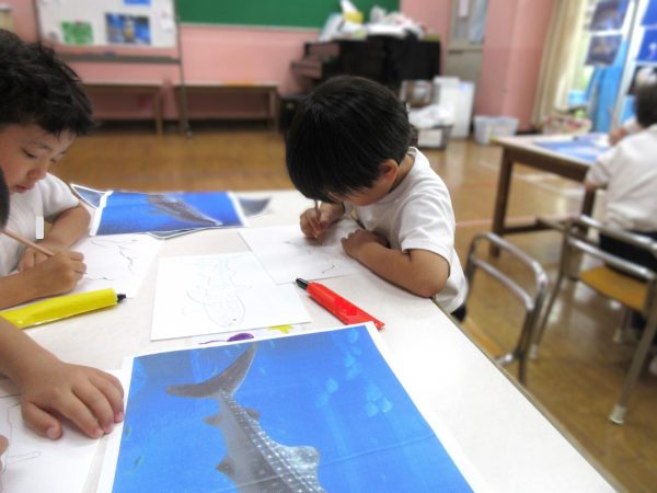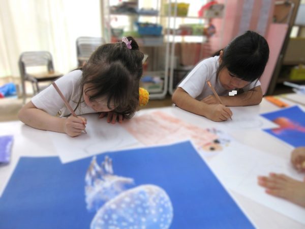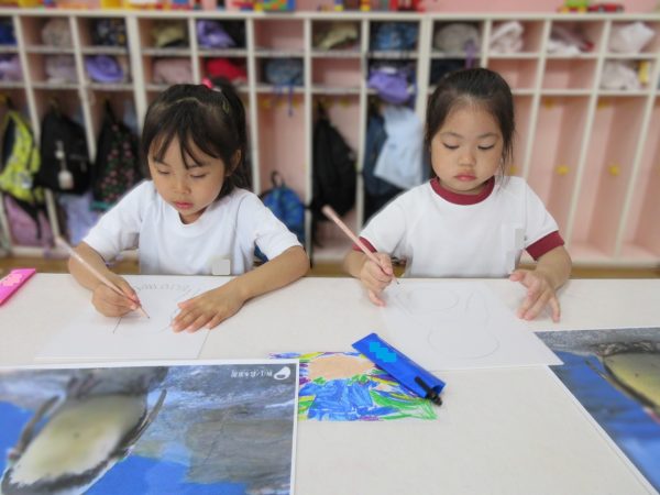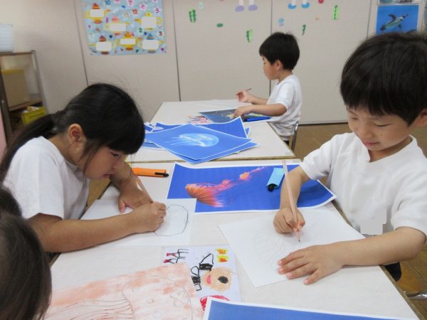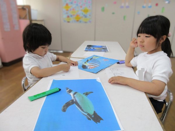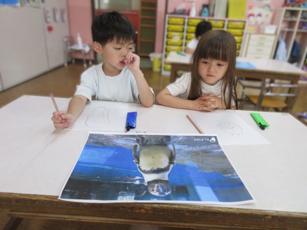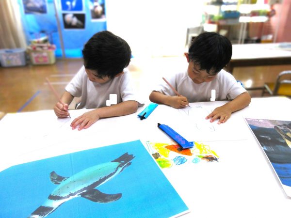 🐧『よーく見て⋯』~海の生き物の写真を見ながら、鉛筆で強く⋯大きく⋯描いたよ。みんな のびのびと描けていたね!
