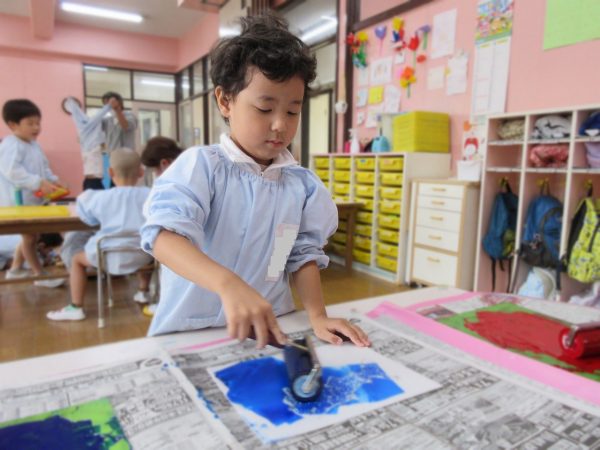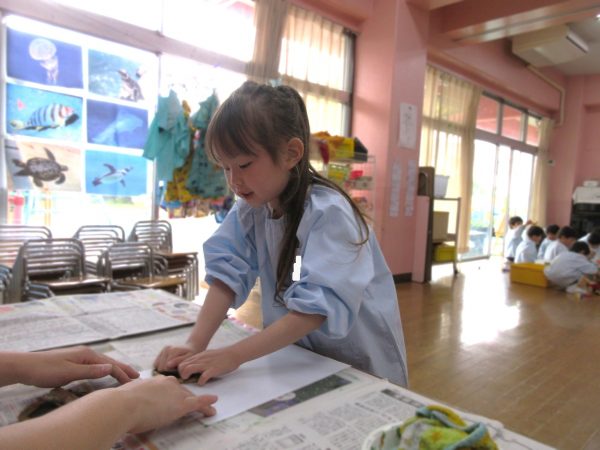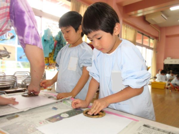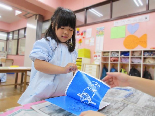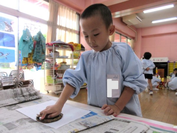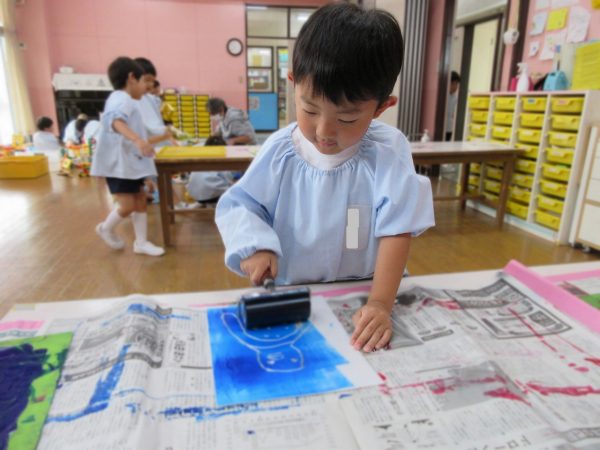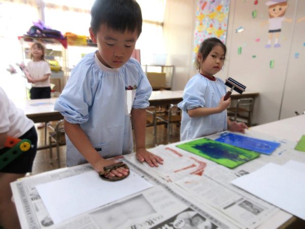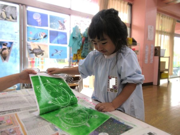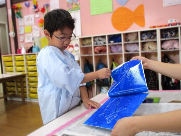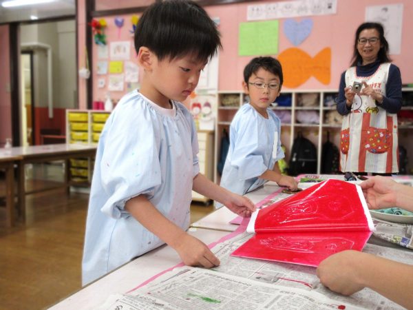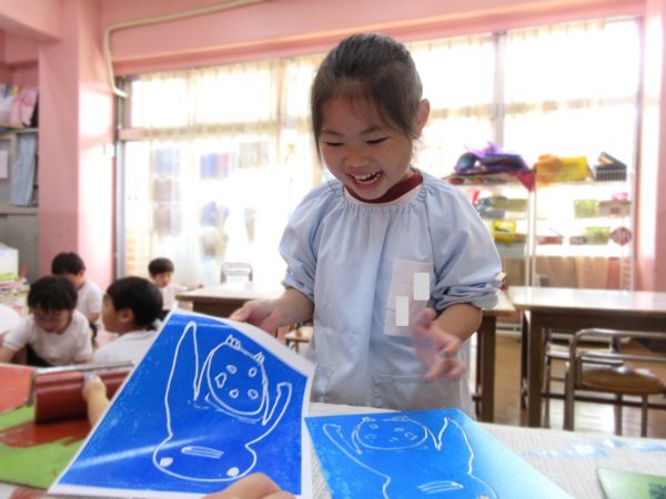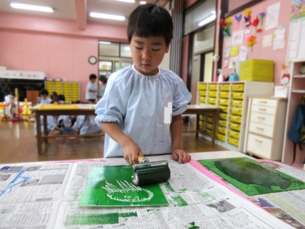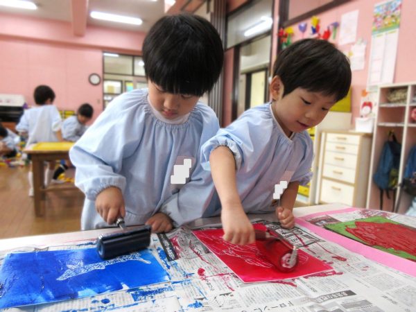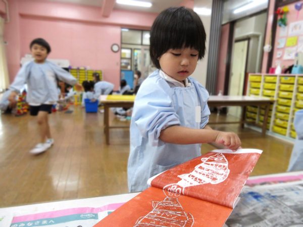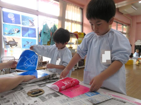 😃『版画って⋯』~描いた絵にローラーでインクをつけて、紙をのせたらバレンで刷り、紙をめくったら 「うわー すてき!」