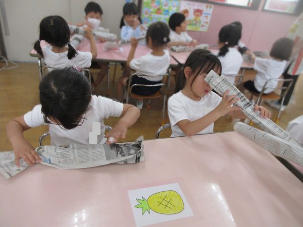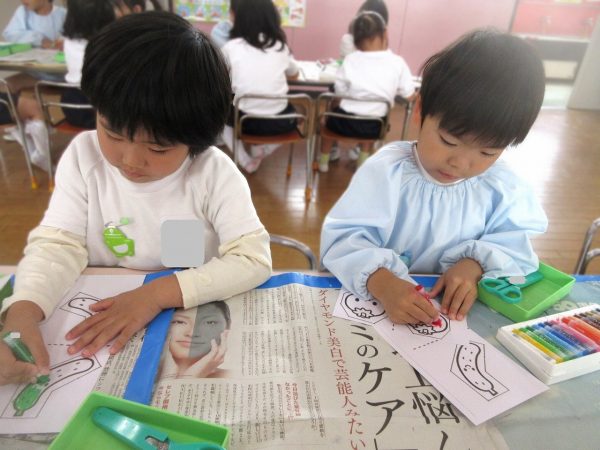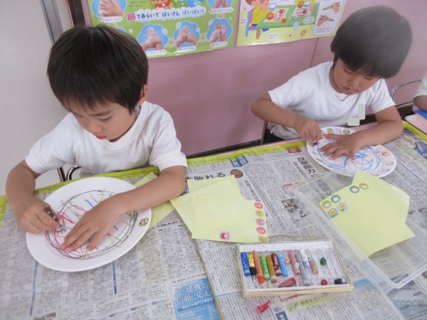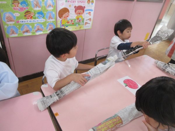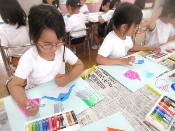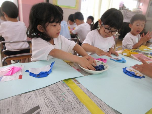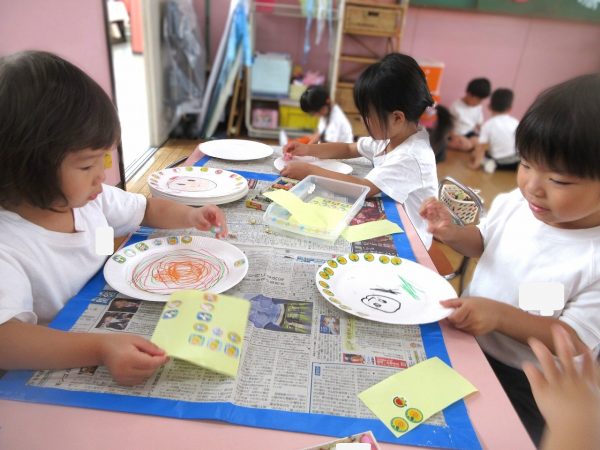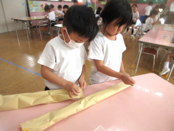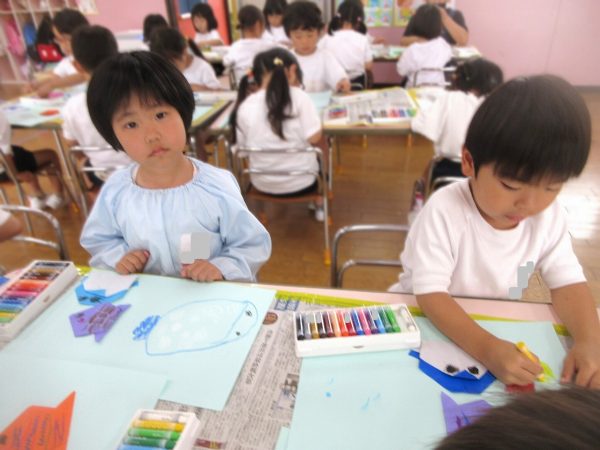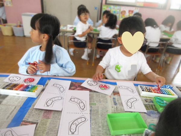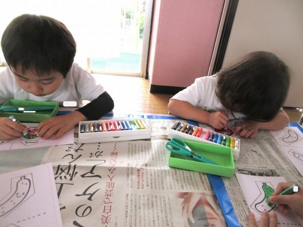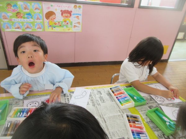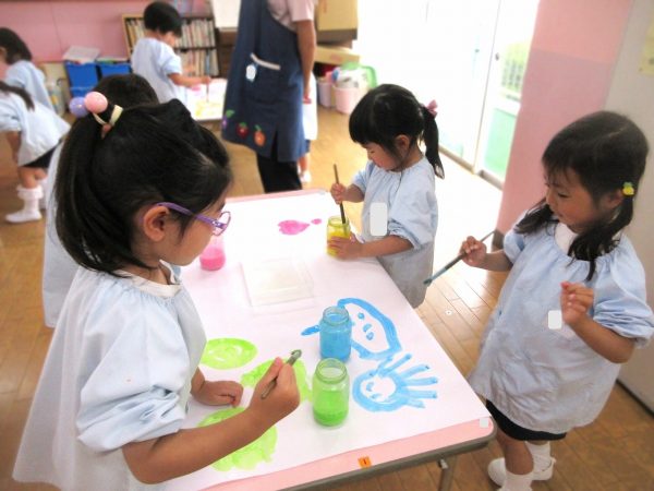 🖌『絵の具遊び』~大きな紙に筆を使って、自由にのびのびと描いたよ。遠足で水族館に行く日が近かったので、魚や生き物を描くお友だちもいたんだ!