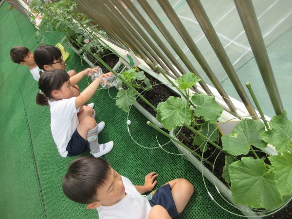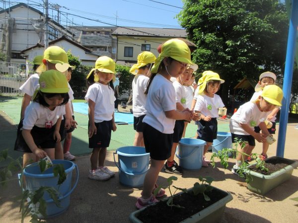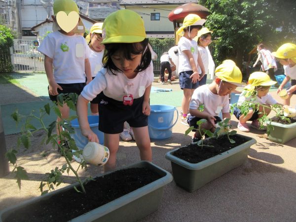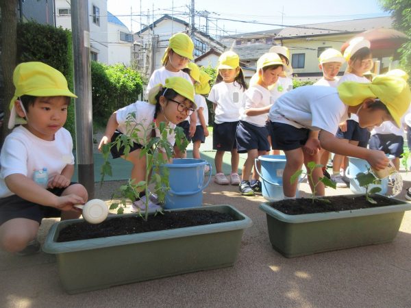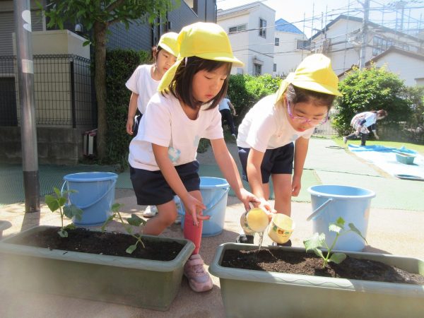 🌱『優しく、優しく⋯』~苗をプランターに優しく植えてあげて、お水をたっぷりあげたよ。「おいしい野菜がいっぱいできますように!」