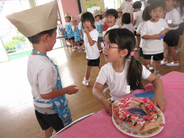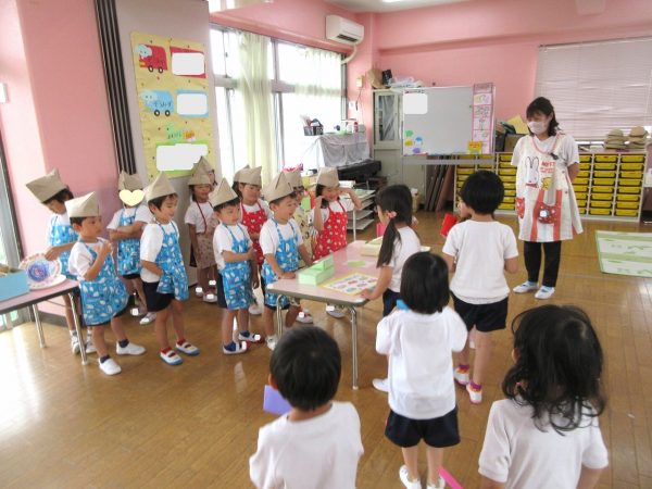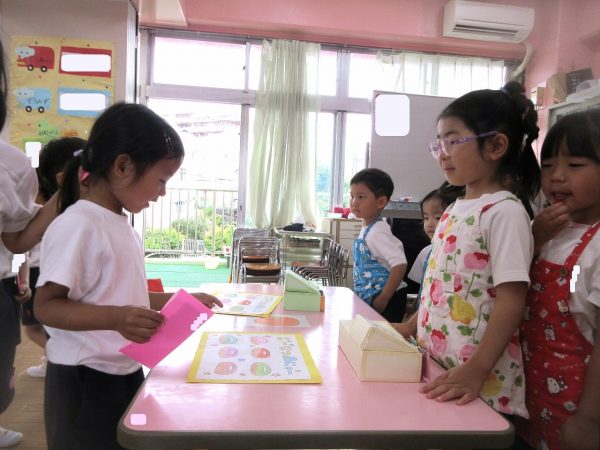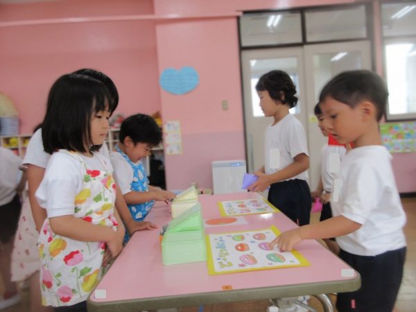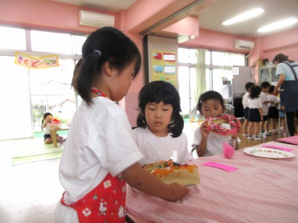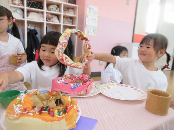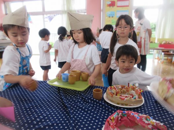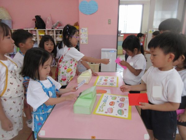 🧑🍳『おいしいドーナツはいかがですか⋯』~いよいよお店屋ごっこの始まり。お店の人とお客さんに分れて、「ご注文は?」「これをください」、「どうぞ!」⋯本物になりきって、みんな楽しんでいました。
