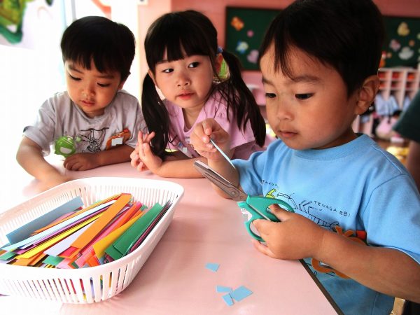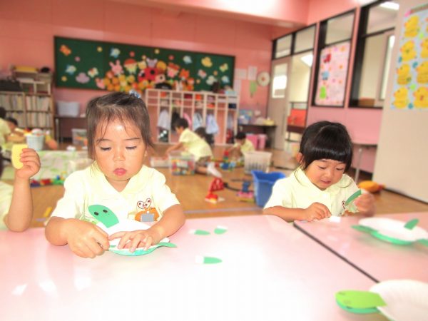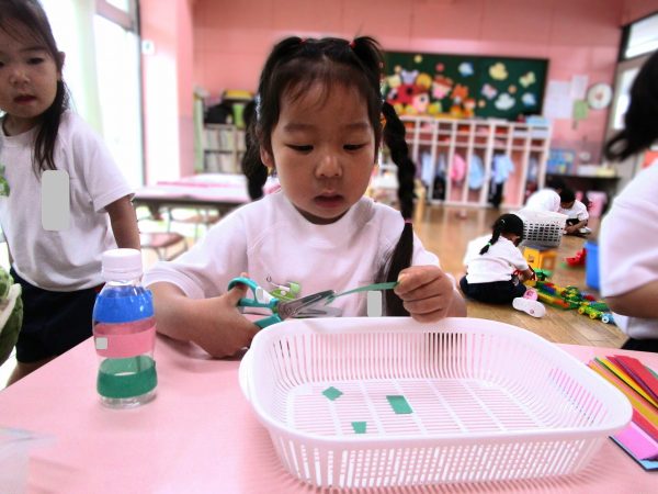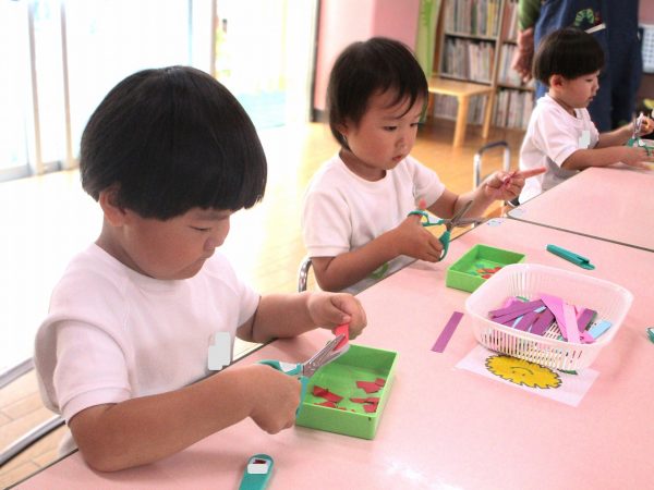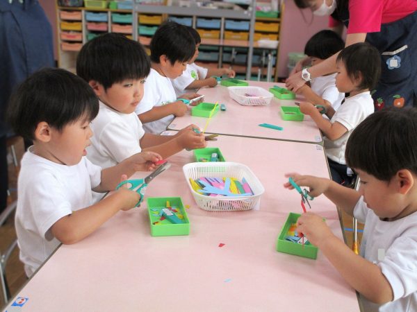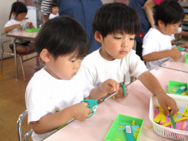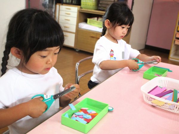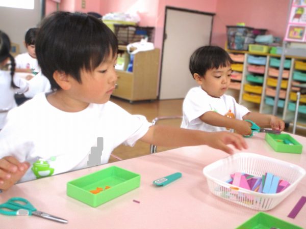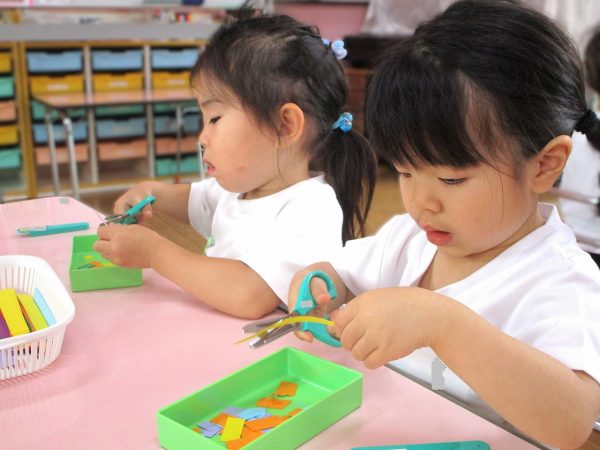 ✂️『ハサミ遊び』~細長い色紙をハサミで1回切りをしたよ。チョキチョキっと切れて、面白いね!