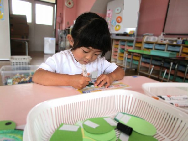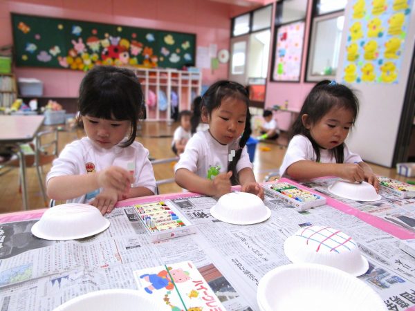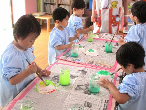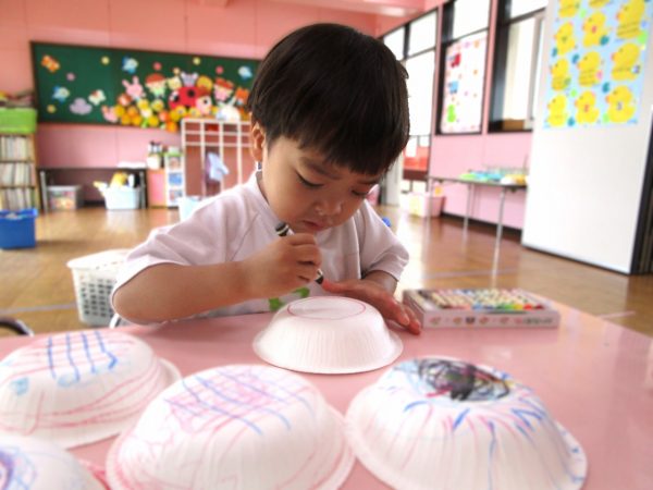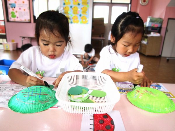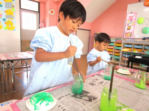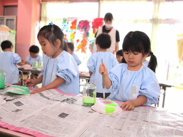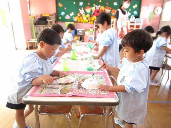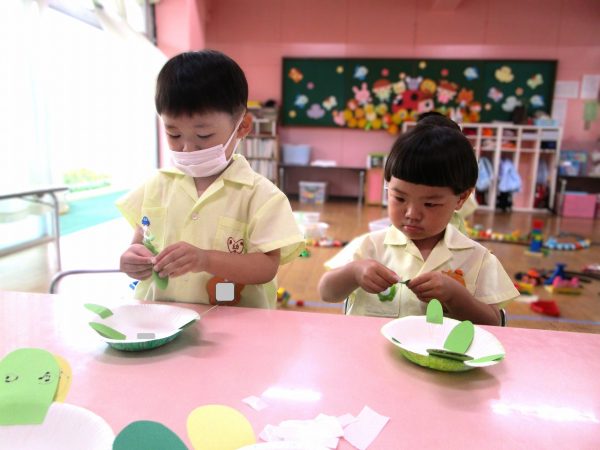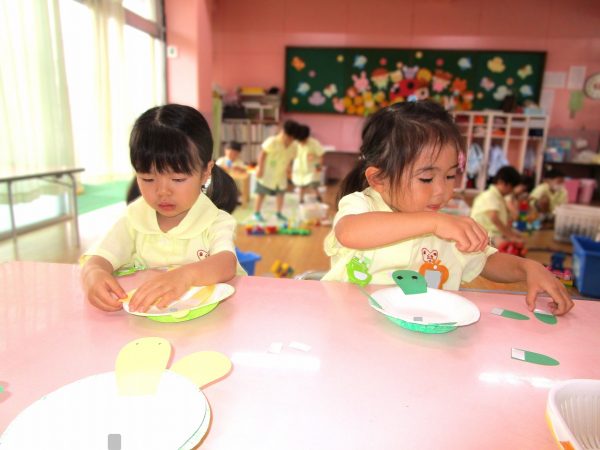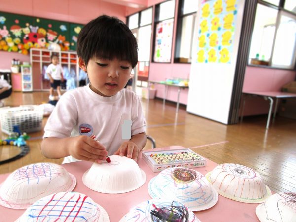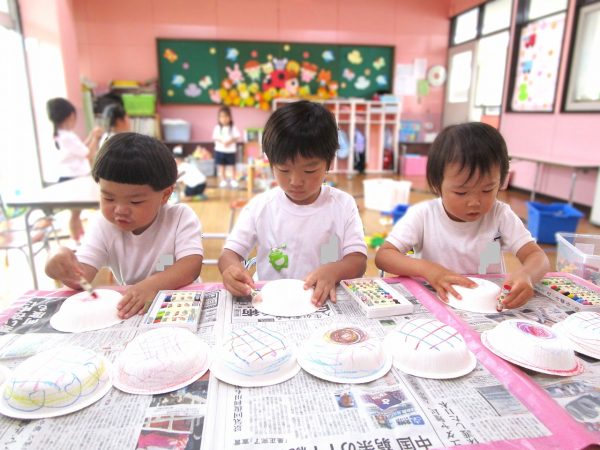 🐢『工作遊び』~カメを作ることにしたよ。お皿(コウラ)をクレヨンで模様をつけて、絵の具で色づけしたんだ!