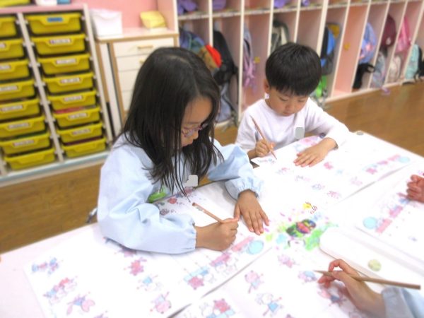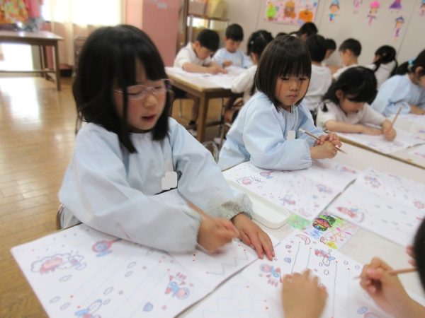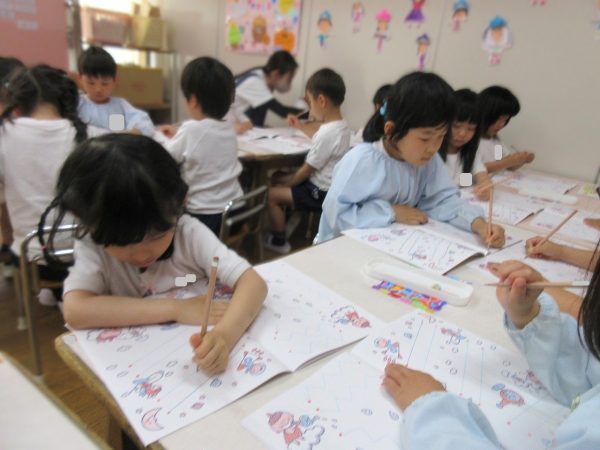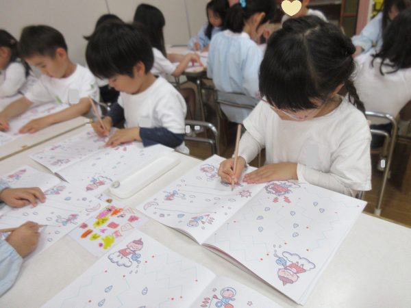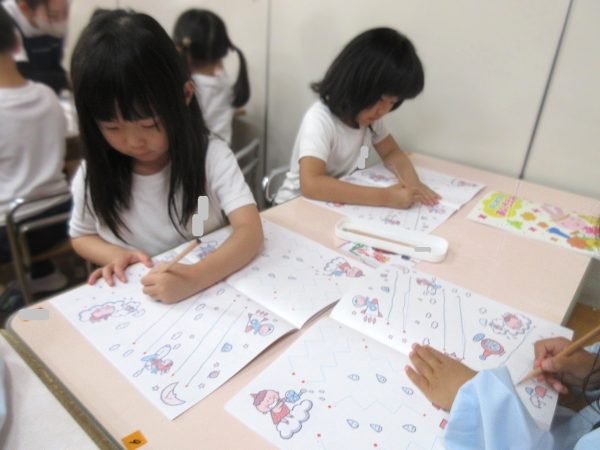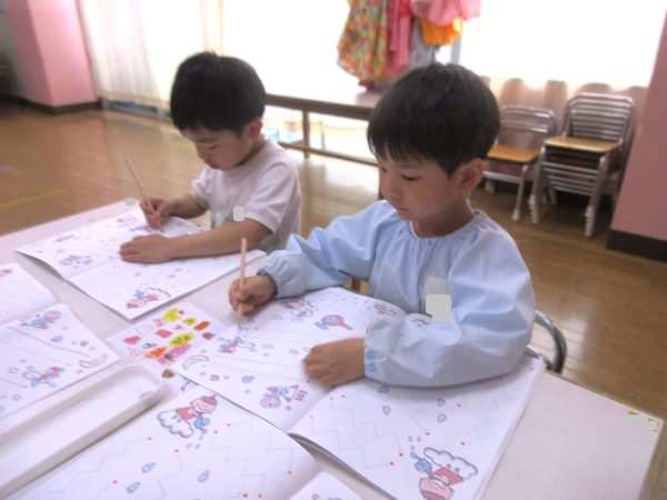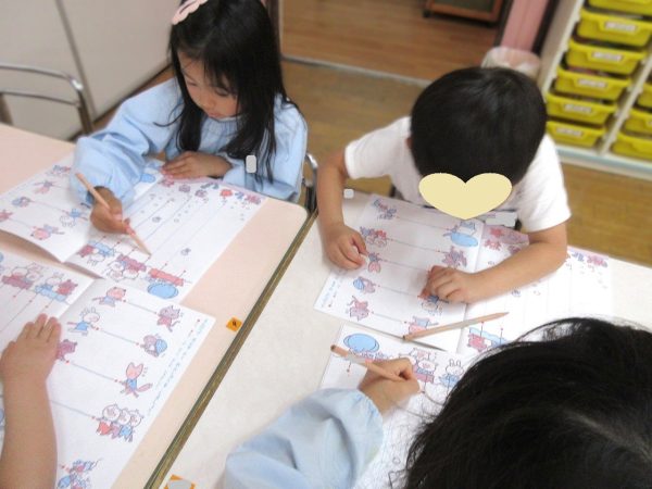 🖋️『平がなワーク』~正しい姿勢で鉛筆を持ってみたよ。手本に沿って直線や斜線、波線や曲線などを書いてみたんだ!