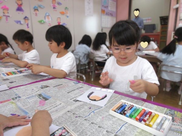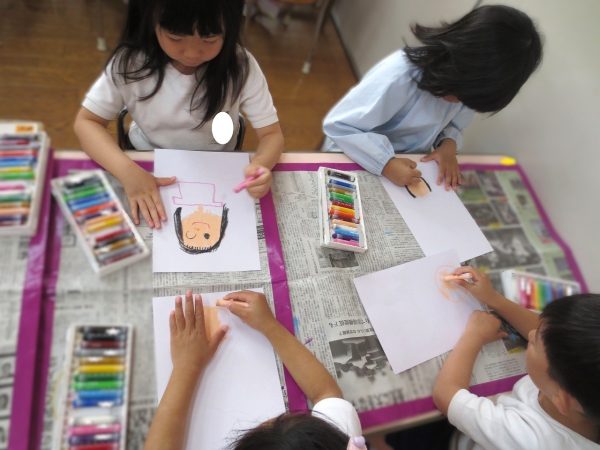 🖌️『名前書き、自分描き』~自分の名前をペンで書いて、自分の顔をクレヨンで描いたんだ。上手に書けたし、そっくりに描けたんじゃない!?