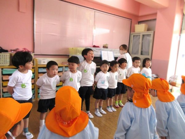 😉『年中さんが⋯』~年中のお兄さん、お姉さんがお部屋に来てくれて、朝のうたとご挨拶を教えてくれたんだ。年中のお兄さん、お姉さんも優しいんだよ!