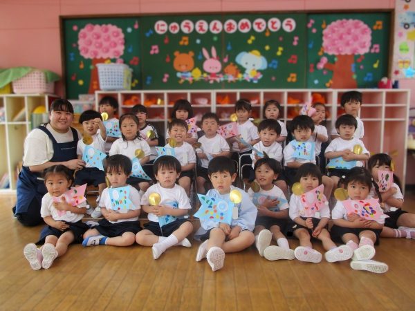 😊『入園 おめでとう』~年長さんが「おめでとう💕」と言って、プレゼントを首にかけてくれたよ。「年長のお兄さん、お姉さん、ありがとう!」