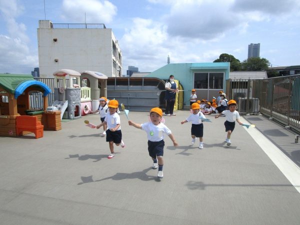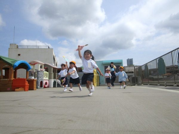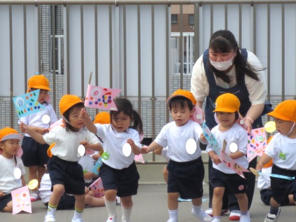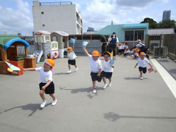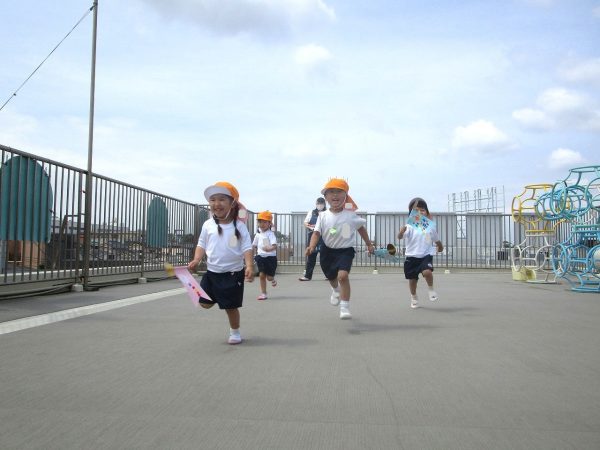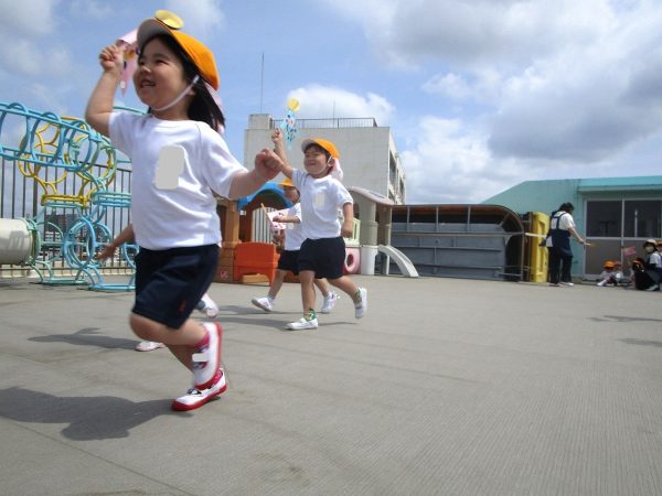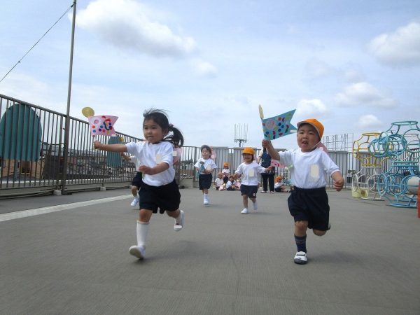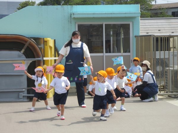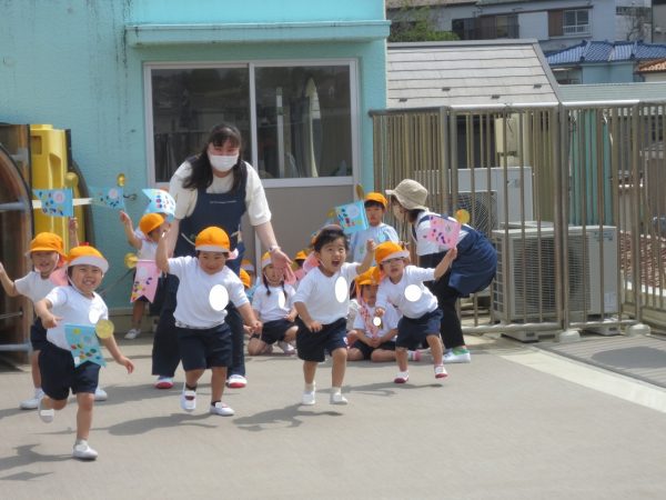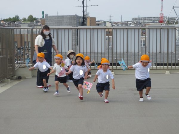 😮『こいのぼりを持って⋯』~こいのぼりを持って、屋上に行ったよ。端から端までいっぱい走って、こいのぼりを泳がせたんだ!