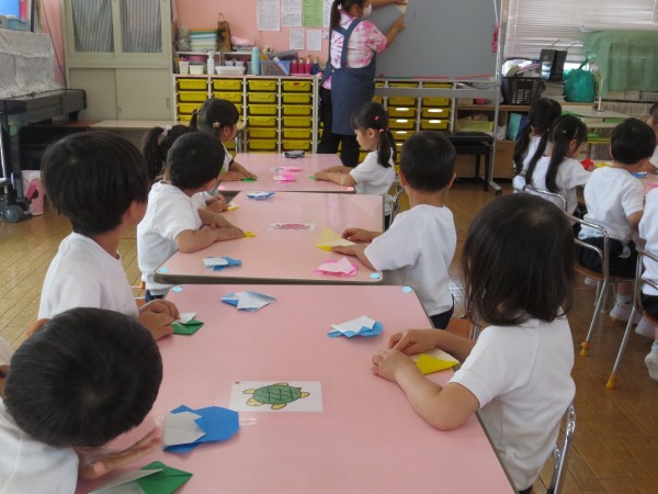 雪が降りそうな寒さになってきました。今度、雨が降る日は雪に変わるかな?雪だるまをつくれるくらい降るかな?折った雪だるまやツリーをのりで色画用紙に貼りました。 ツリーには思い思いに飾りを描いて、雪だるまも大きい体や背の高い…