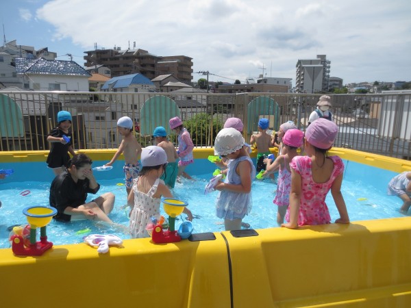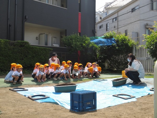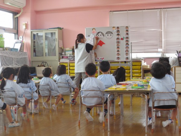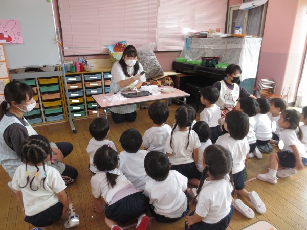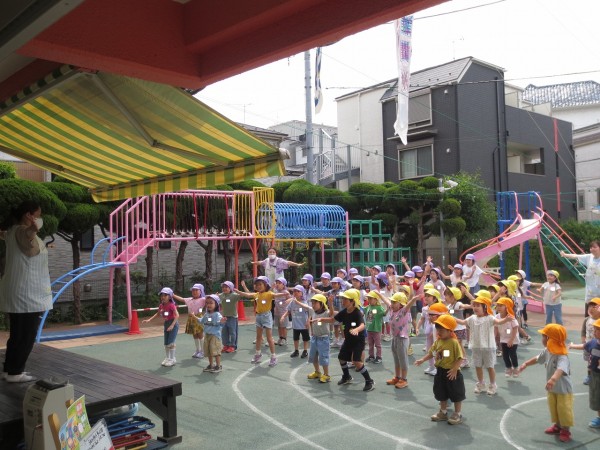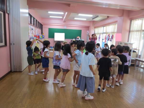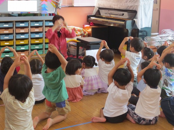 お遊戯会で藤組さんがピアニカ・シンバル・大太鼓・小太鼓・鉄筋・木琴・タンバリン・トライアングルを使って合奏をしました。菊組さんも小桜組さんも楽器をかりて、藤組さんは楽器を交代して、順番に回りながら好きに音を出して合奏をし…