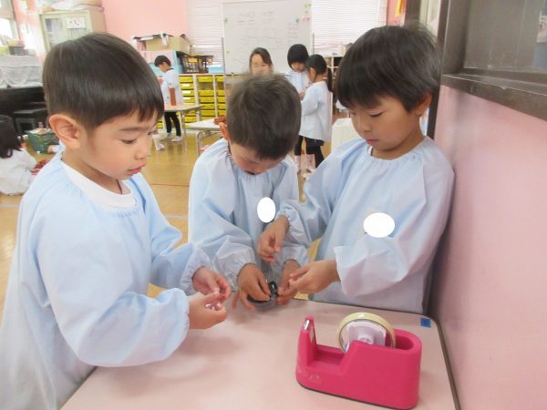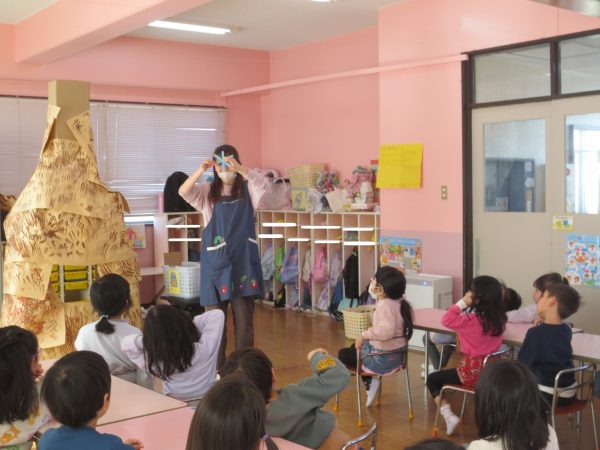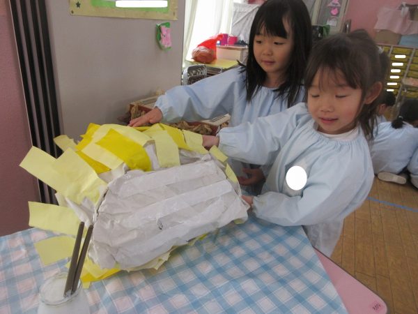 ランプシェードは年中・年少組さんの憧れです。感想をきくと口々にお話してくれます。