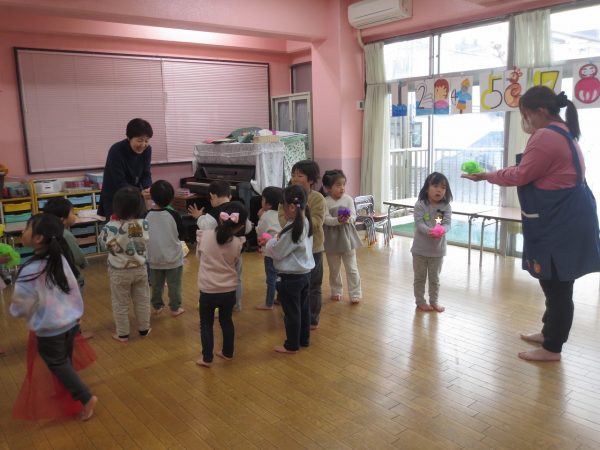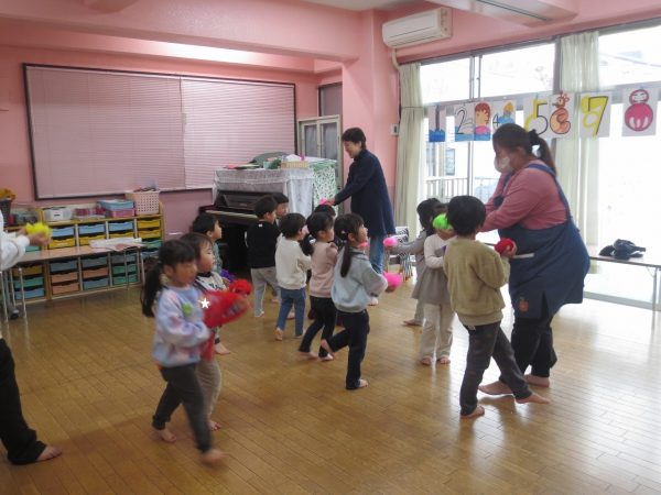 小桜組さんはリトミックやマット遊びをしました。お部屋中にニコニコ(≧▽≦)笑顔がいっぱい!