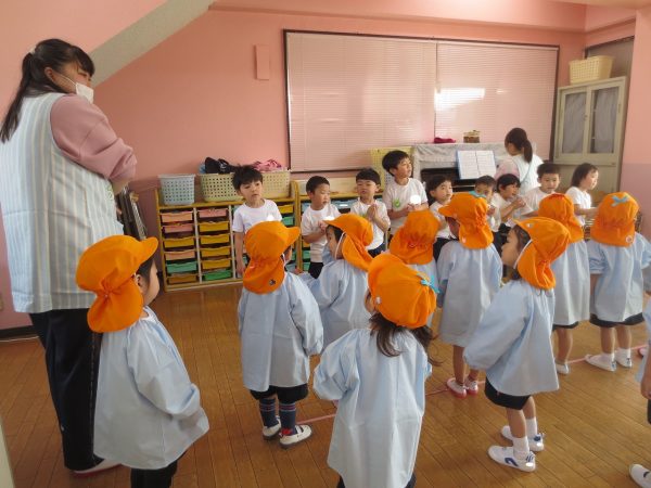 菊組さんも、藤組さんもお集まり上手になったね。今日は自己紹介しました。ドキドキしたけど頑張ったね💕