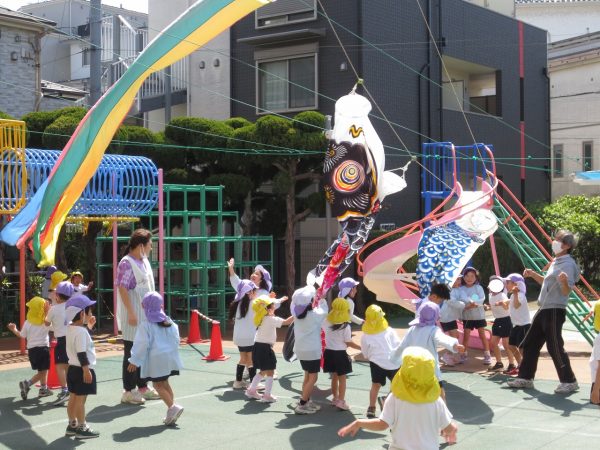 朝は雨が降っていたけど、いい天気になって力を合わせて藤組さんのお友だちが鯉のぼりをあげてくれたよ。ありがとう☆彡