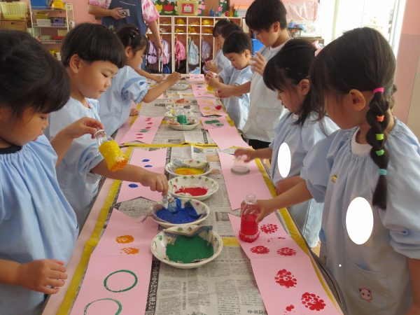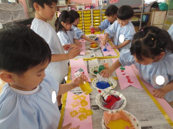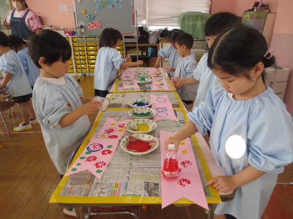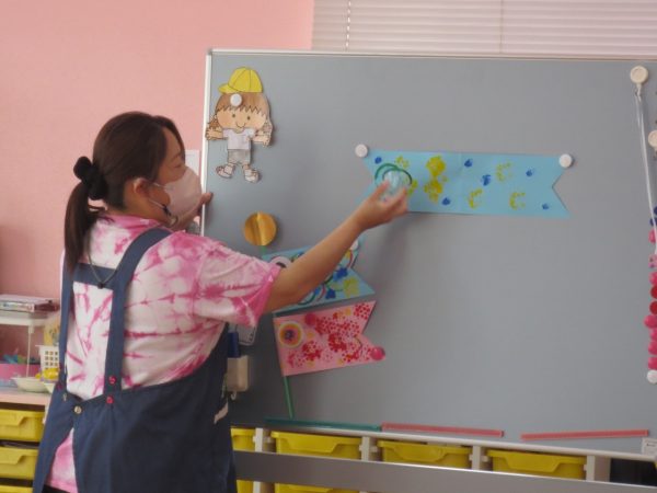 菊組さんの鯉のぼりはスタンピングをしました。目はこれからつけます。