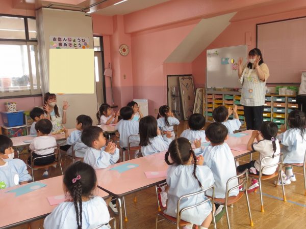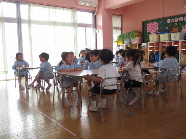 園庭では気持ちよく鯉のぼりが泳いでいます。