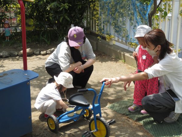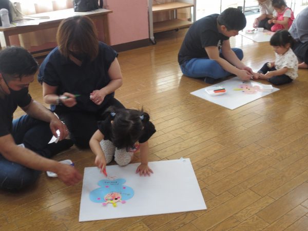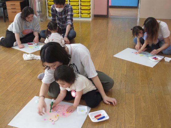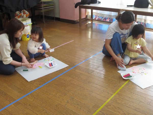 月に1回。土曜日に行われる「カンガルー親子広場」今日はチョウチョの写真飾りを作ったり、お外遊びや室内遊びを楽しみました💕 まだ、椅子や机は使わずに裸足で過ごしたり、パパやママのお膝が椅子に変身してくれます。