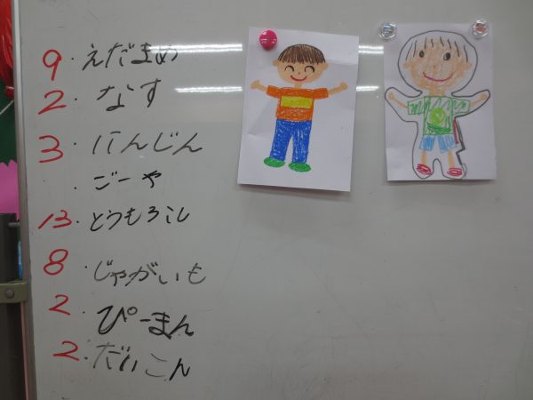 育てる野菜を決める話し合いにじっくりと時間をかけています。今年は何を育てるのかな?