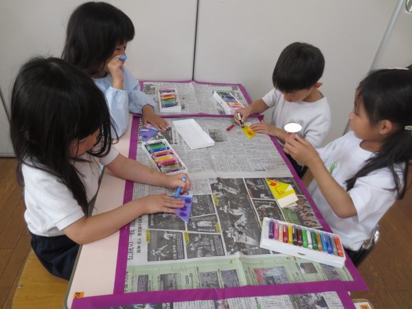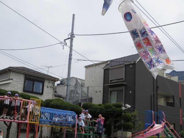 藤組さんの鯉のぼりが完成(^^♪~ 一人ひとりが描いた鯉のぼりのウロコ。素敵な模様になったね☆