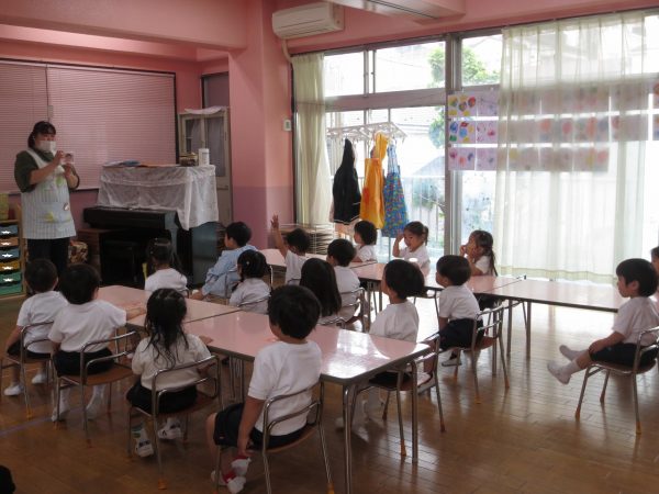 明日からゴールデンウィーク後半の始まりです。今日は雨になる前にお外遊びを少し楽しめました。雨が降り始めてお部屋遊びをしましたが、小桜組さんは大型バスの続きのぬり絵を、菊組さんはたけのこ体操やマット遊びを、藤組さんはピアニカをしました。昨日からお当番さんも始まった藤組さん。ごあいさつも大きな声で頑張っているね💕