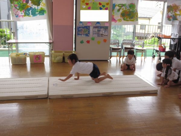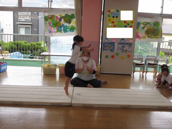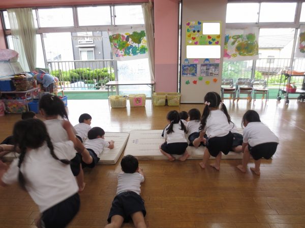 <菊組> たけのこ体操やお弁当箱の手遊びやマット遊びをしました。