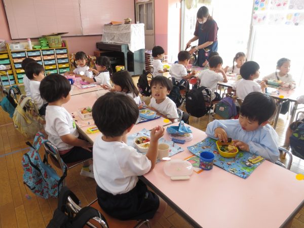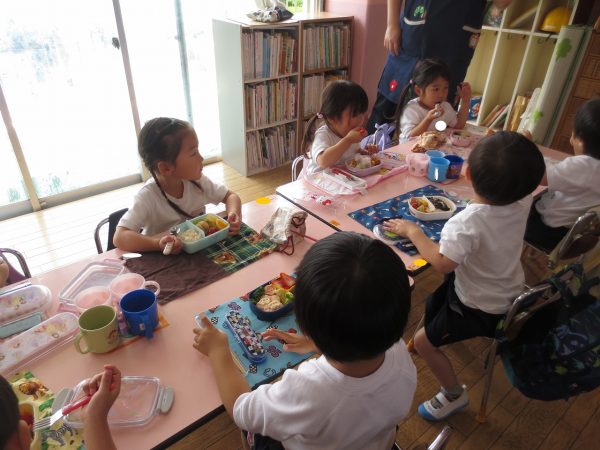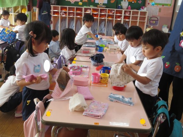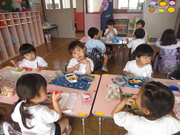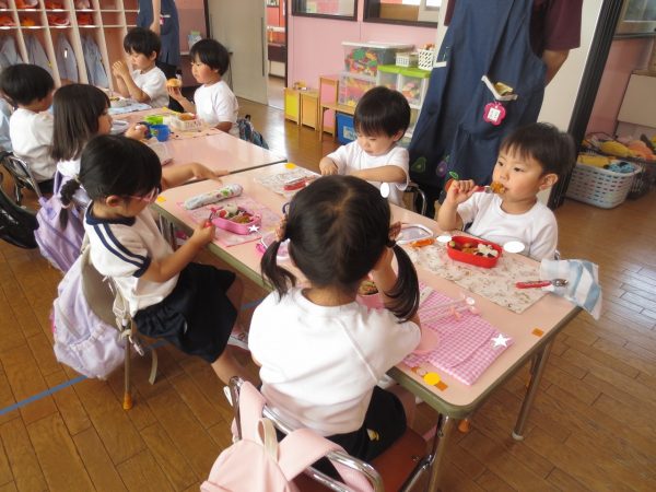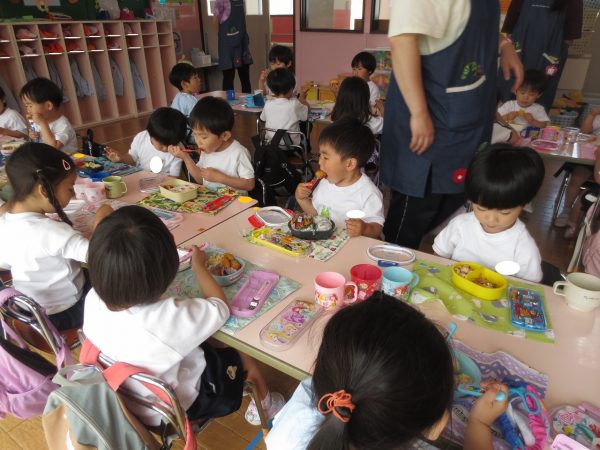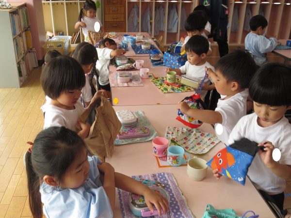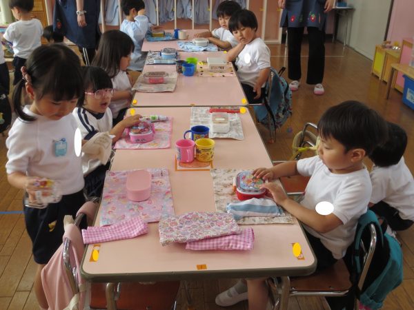 毎日、繰り返し・繰り返ししながら身についてきた小桜組さん。靴や上履きを履くのも、お集まりで座って待つのも上手になってきました。お弁当の支度もビックリする程にスムーズになって、いつのまにか支度を終えて椅子に座っているお友達が増えています。いつも美味しいお弁当作ってくれて、ありがとう💕