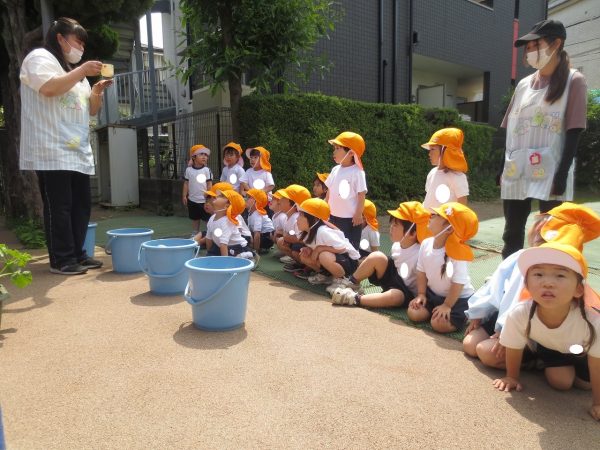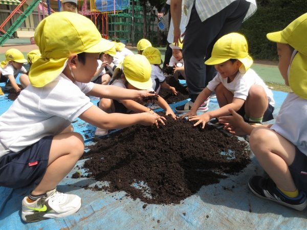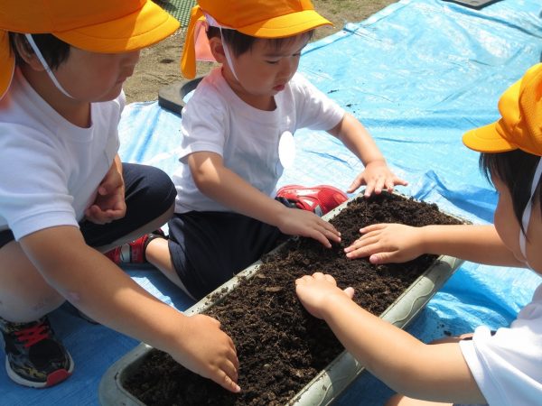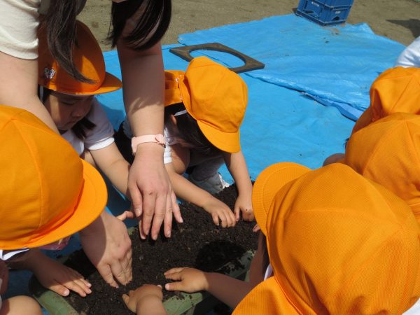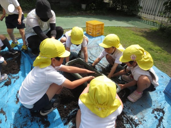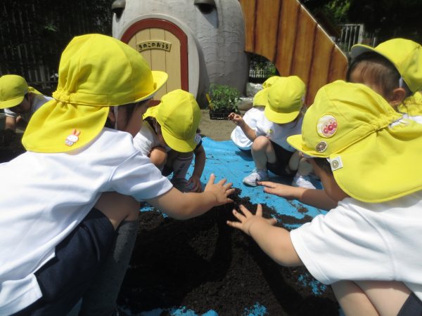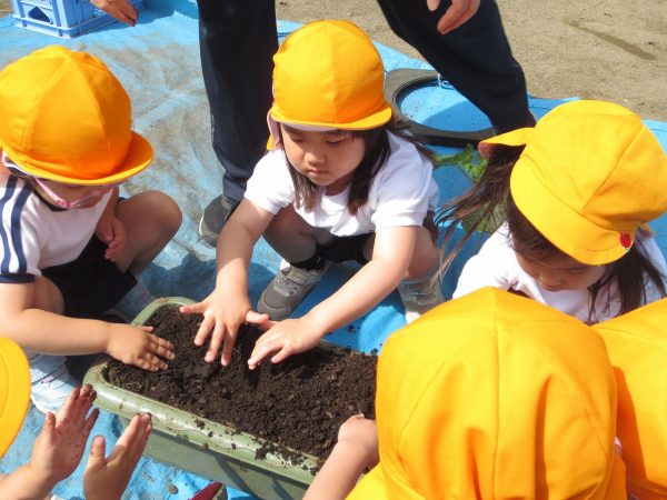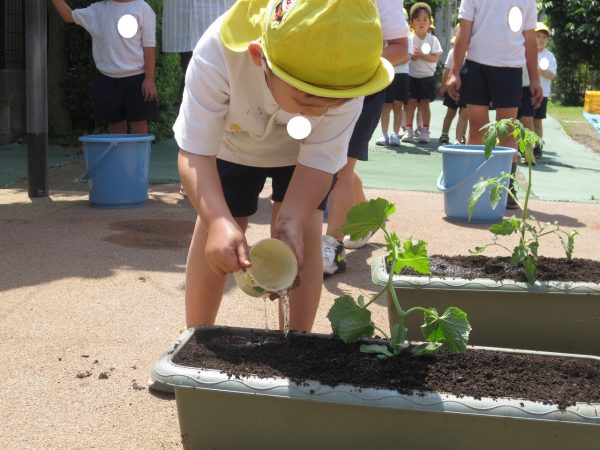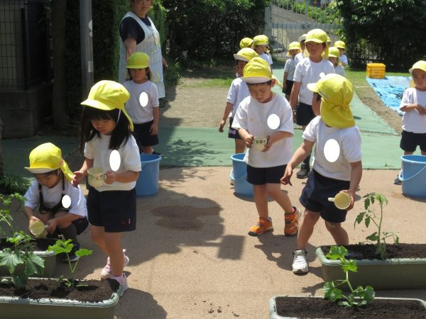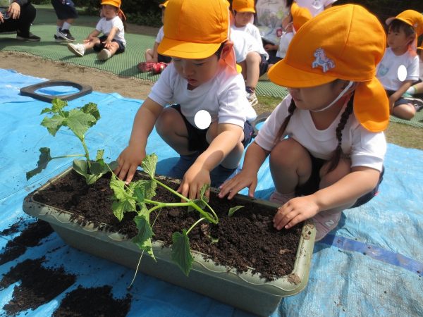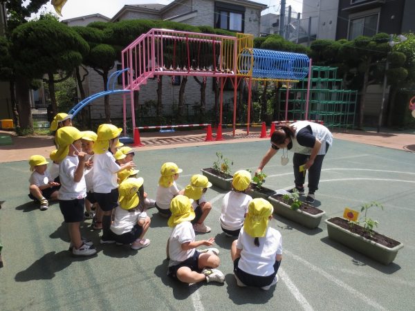 五月晴れの中、菊組さん・小桜組さんもプランターで野菜を栽培しました。