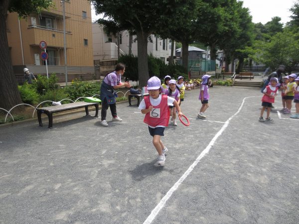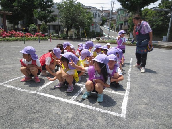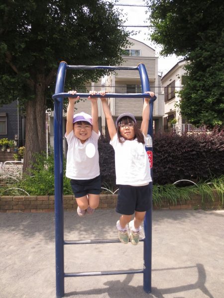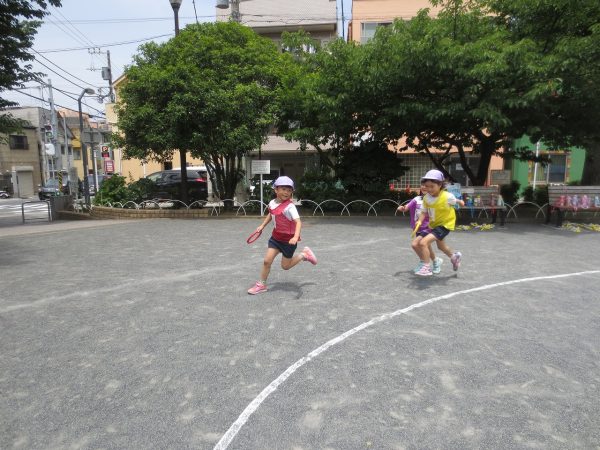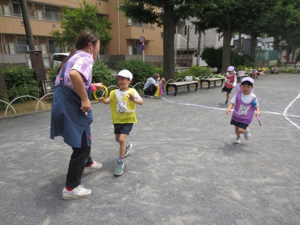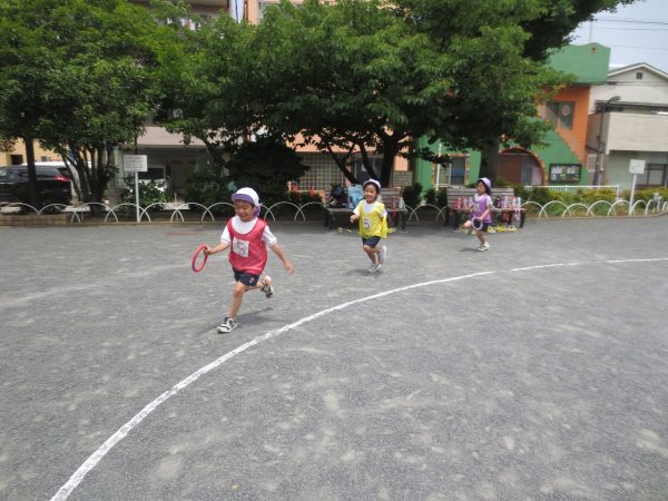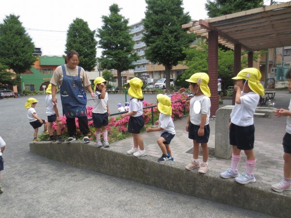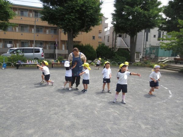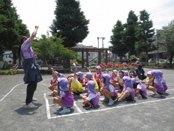 今日は藤組さんと菊組さんで公園に行きました。藤組さんは、縄跳び体操の技の練習やリレーをしたよ。菊組さんはいっぱい遊んだよ。