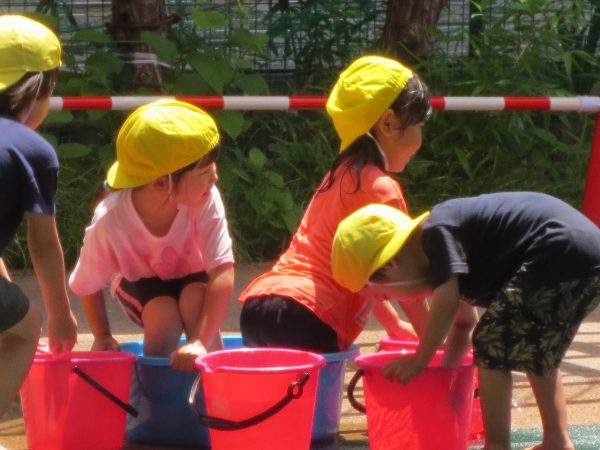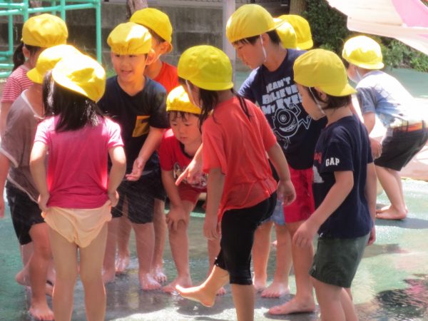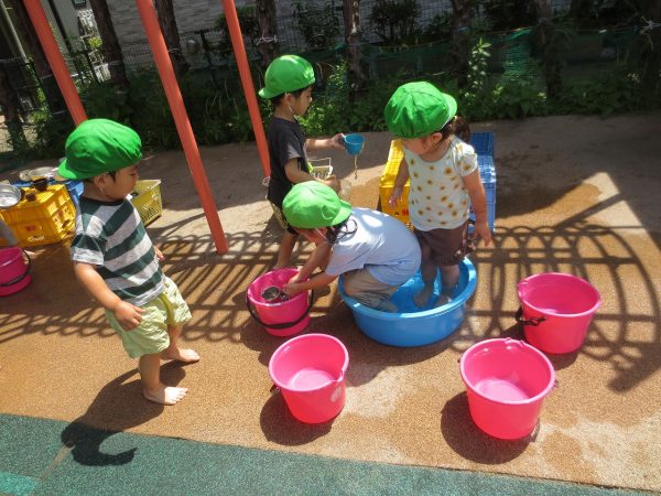 <菊組「水遊び」・藤組「泥遊び&水遊び」>