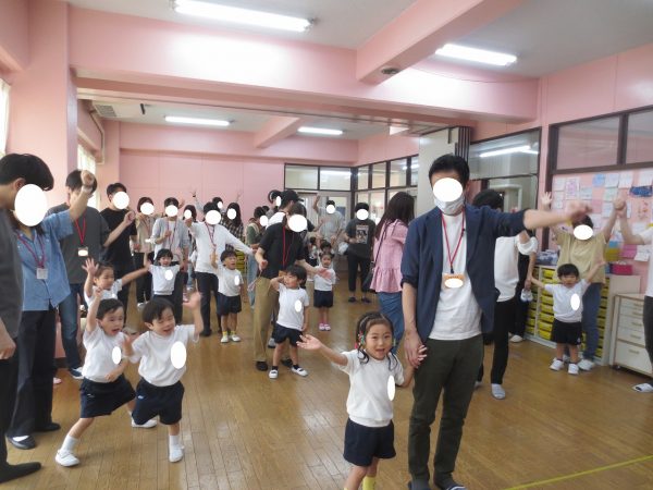 「サンサン体操」をおとうさん・おかあさんと一緒にしたよ。