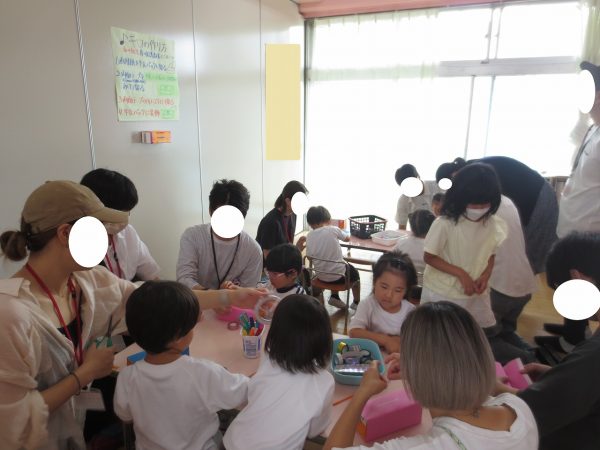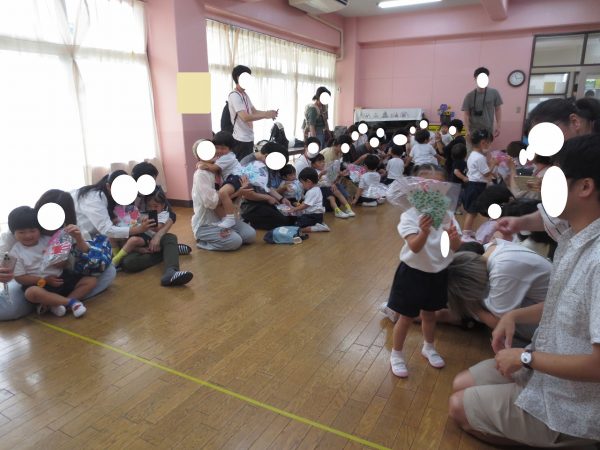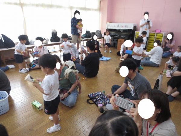 作り終えた後、おとうさん・おかあさんも一緒に楽器を選んでもらい、小桜組さんの好きな曲「手をたたきましょう♪」などにあわせてコンサートをしました。最後にプレゼントを「いつもありがとう💕」とおとうさん・おかあさんに渡すとニコニコ笑顔!(^^)!がお部屋いっぱいに広がりました。