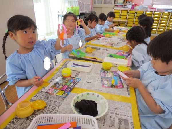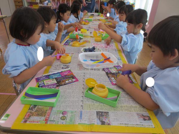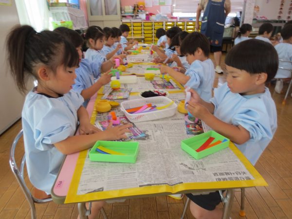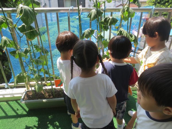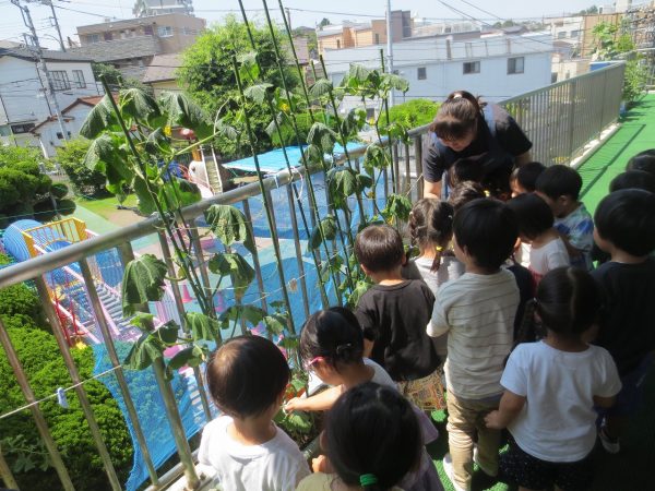 藤組さんでは、お泊り会のスタンツ「あの橋が落ちる前に」を初めてしました☆彡 菊組さんでは七夕製作をしました☆彡 小桜組さんではきゅうりの収穫をして、クラスで切ってマヨネーズをつけて給食と一緒に食べました☆彡