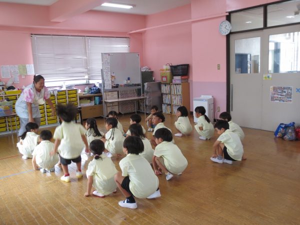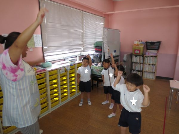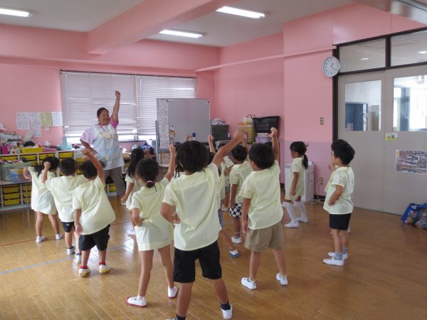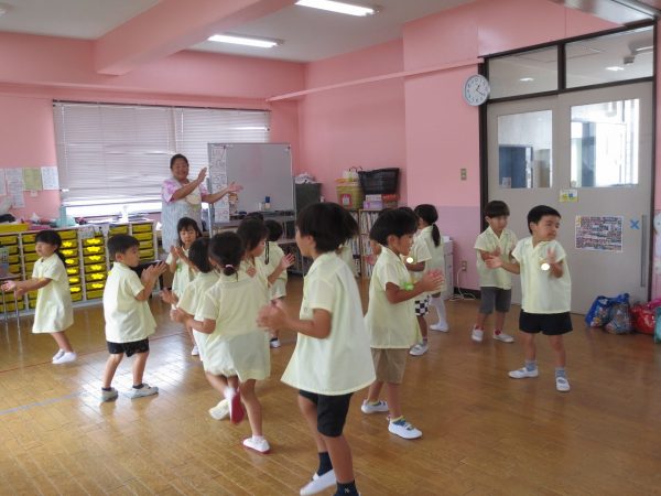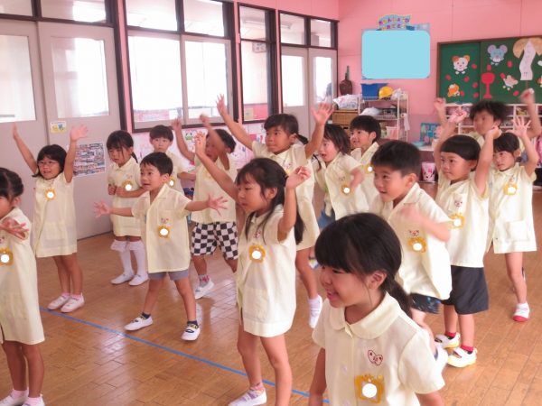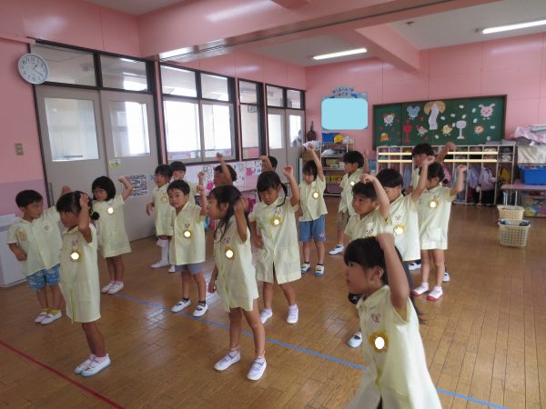 運動会できく組さんはポンポンを使って踊りますが、お家の方々にもポンポンつくりを手伝っていただいています。「海みたいなんだよ」とポンポンのお話してくれるお友達もいます。お部屋では少しずつ練習を始めています。踊りが気に入ったお友達が自由遊びでも踊りたいとリクエストしてくれています。