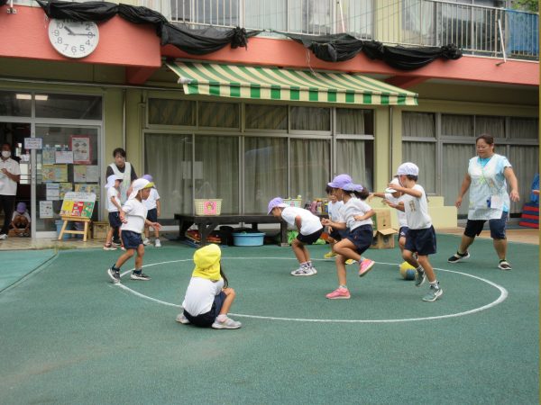 運動会の開会式練習の後、3学年みんなでお外で遊びました。
