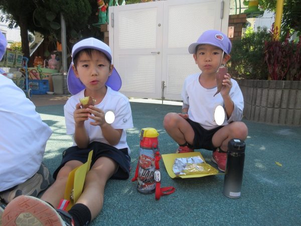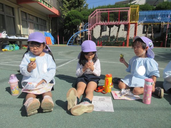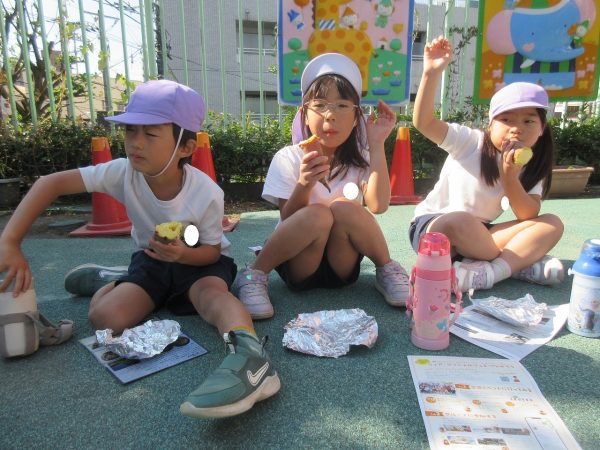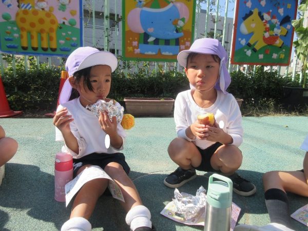 おいしいお芋になりますように( ^ω^)・・・の願いも届いて、お当番さんが届けてくれた焼き芋に小桜組さんも菊組さんも「おいしい~」「あま~い」喜んでくれてよかったね。お母さま方のお手伝い、ありがとうございました💕
