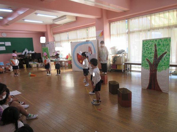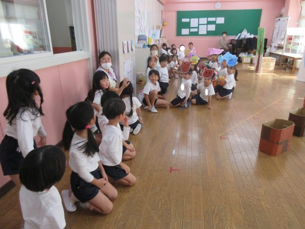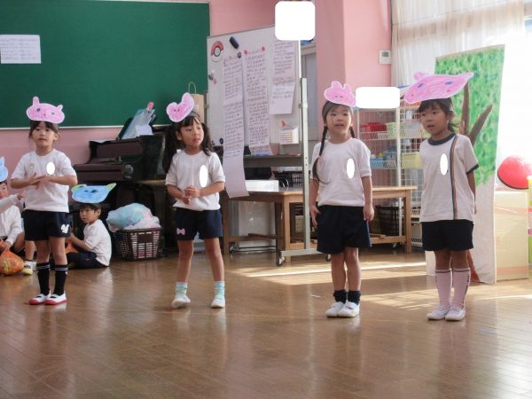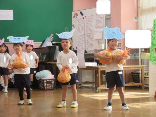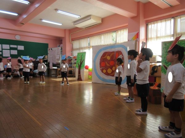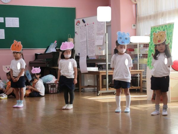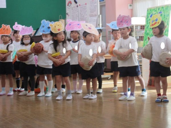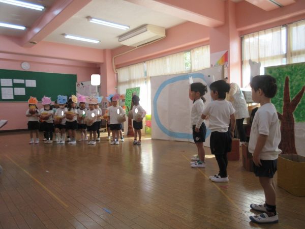 菊組さんの劇は「まーくんのカレーライス」くまのまーくんがカレーをつくると美味しそうな匂いにつられて、動物さんたちがやってきます。どーぞどーぞとカレーライスをあげるうちに、ちょっぴりだけになったカレー。まーくんがもう一度カレーを作ろうとすると動物さん達が来てくれました。どんなカレーができるのかな。お楽しみに!!