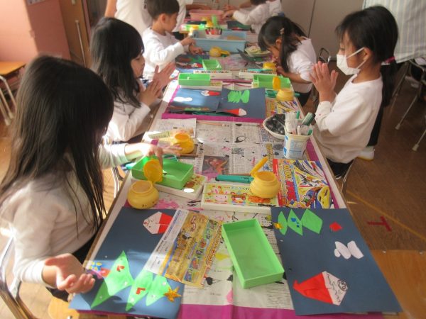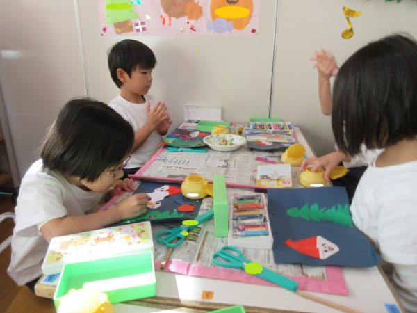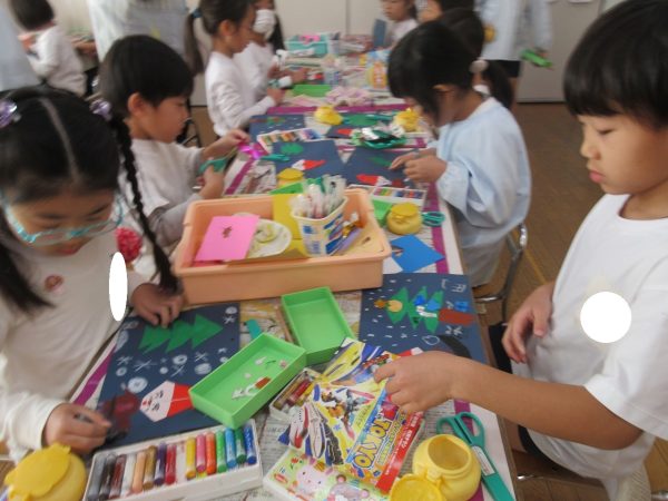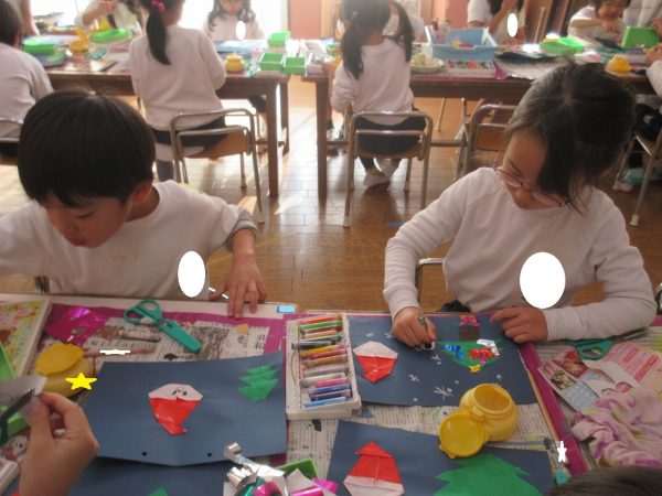 クレヨンで塗ったり、ツリーに飾りを各々につけて、完成しました🔔