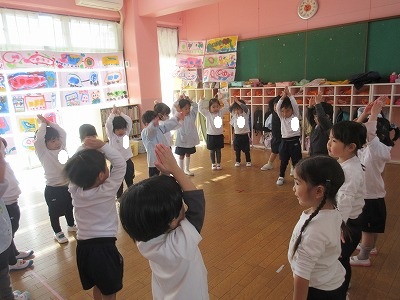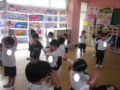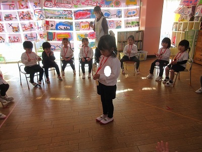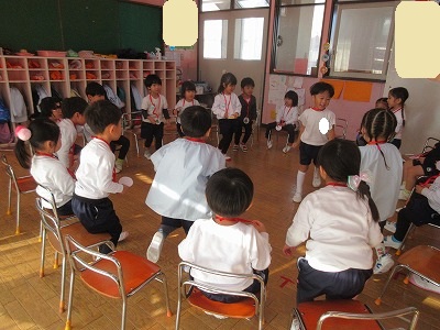 クリスマスお楽しみ会をしました。ゲームをしたり、お遊戯会の踊りを踊ったり、楽しい時間を過ごしました。2学期も終わり、冬休みはクリスマスにお正月と楽しいイベントが続きます。インフルエンザが流行し始めています。身体に気をつけて良いお年をお迎えください。