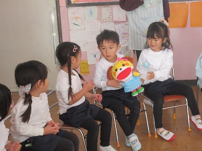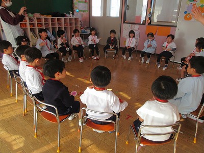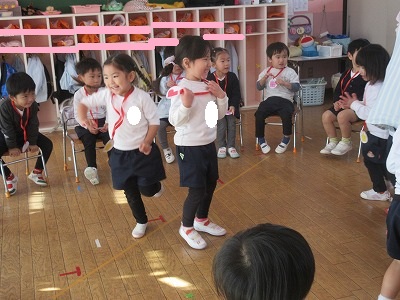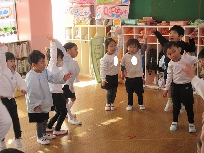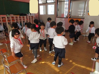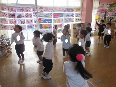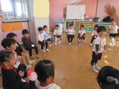 クリスマスお楽しみ会をしました。ゲームをしたり、お遊戯会の踊りを踊ったり、楽しい時間を過ごしました。2学期も終わり、冬休みはクリスマスにお正月と楽しいイベントが続きます。インフルエンザが流行し始めています。身体に気をつけて良いお年をお迎えください。